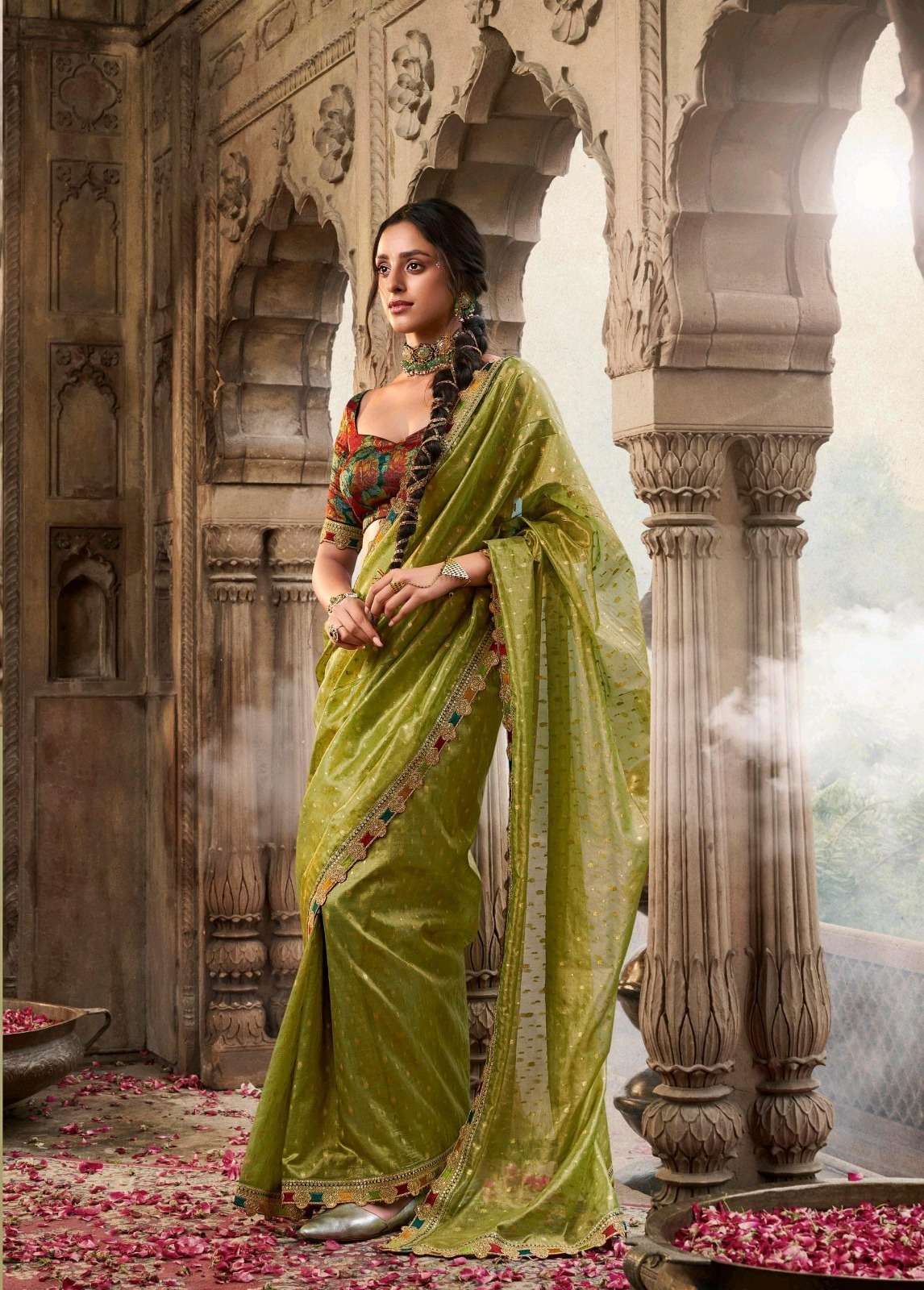 ➡️Catalog - *Kavyasachi* ➡️Rate - *2395+5%* ➡️Fabric - *Pure Tissue With Beautiful Multicolored Lace & Heavy Designer Blouse*