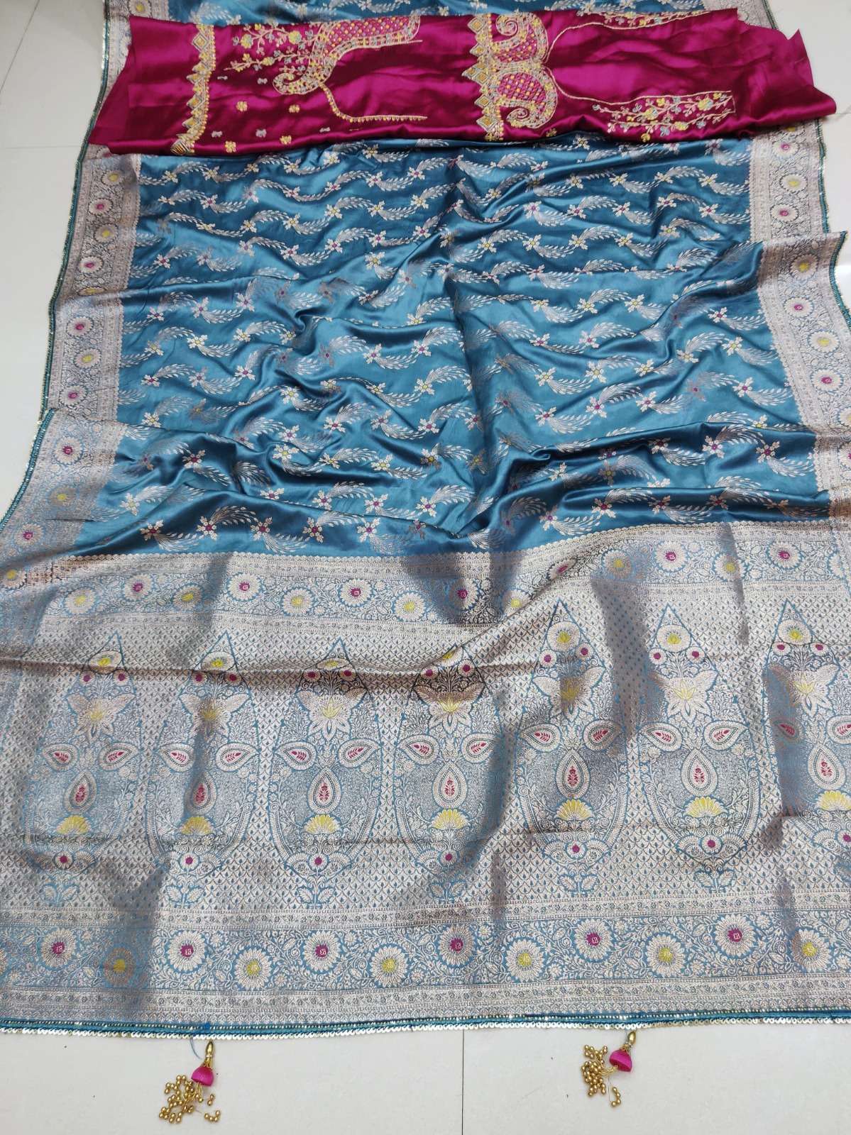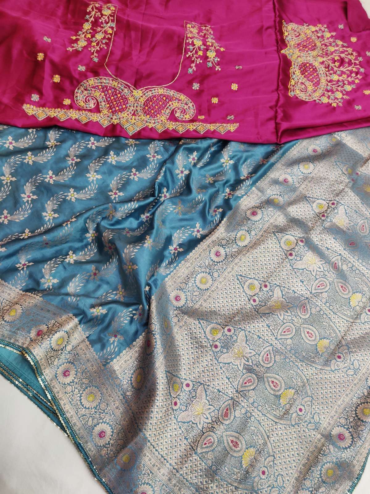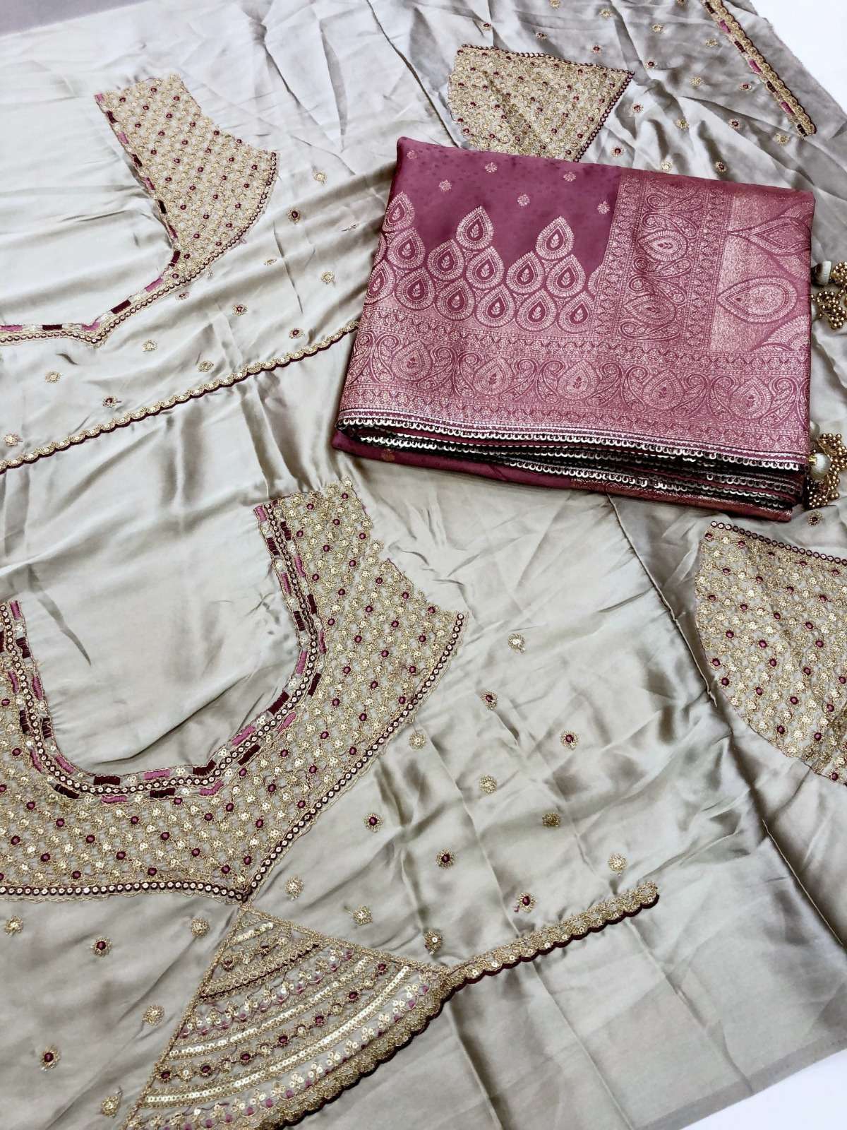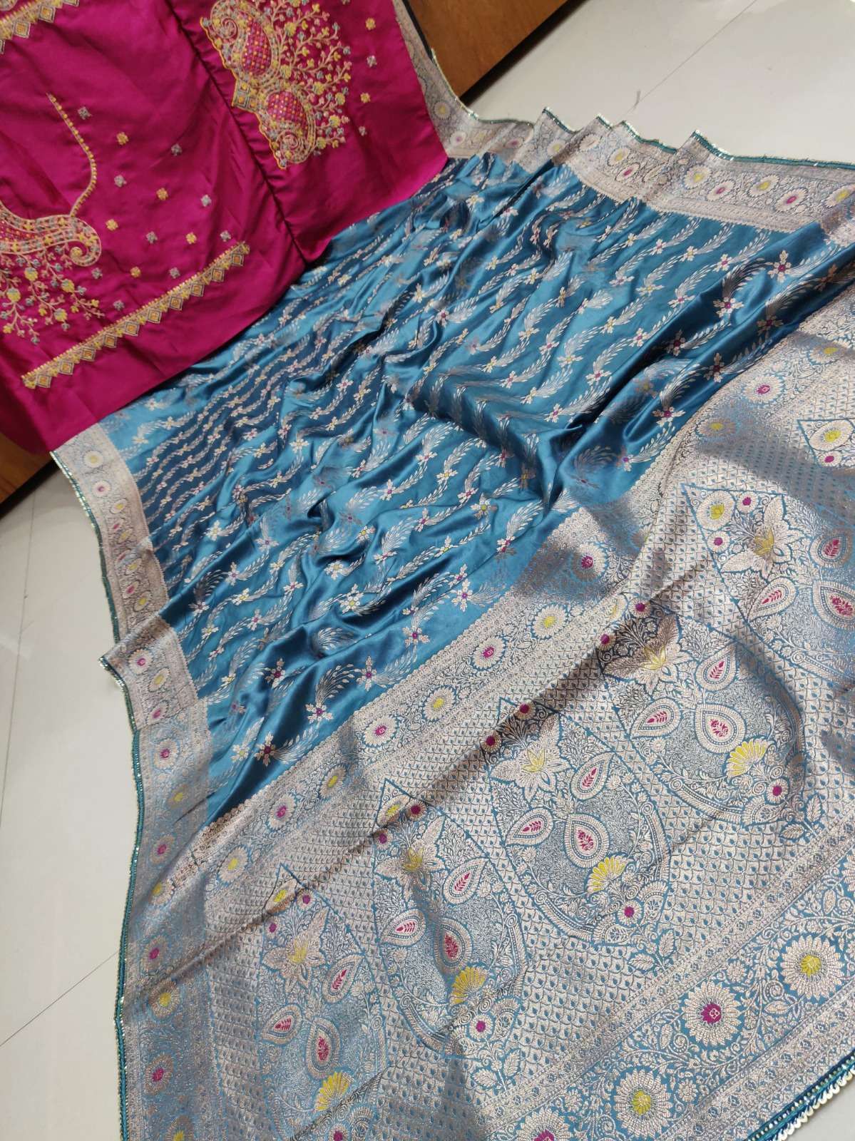 - Pure Sattin based fancy fabric - Beautiful lace border - Contrast design - Heavy designer embroidered blouse