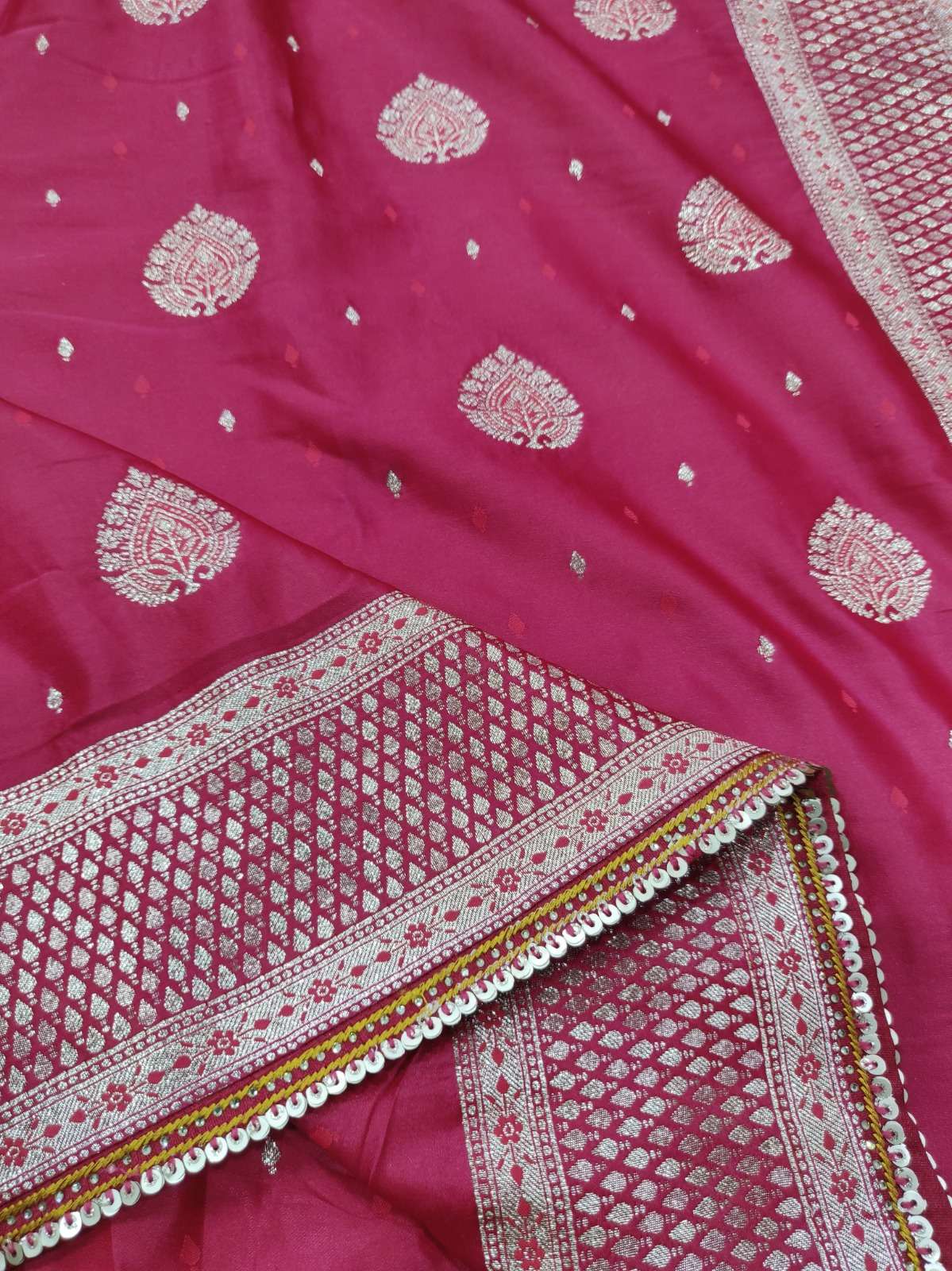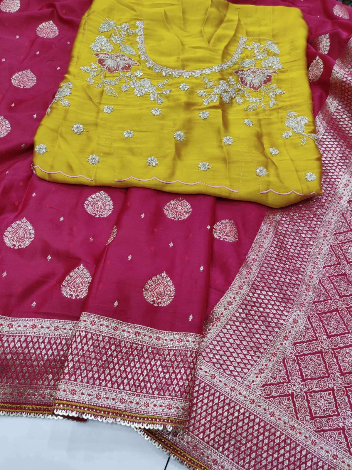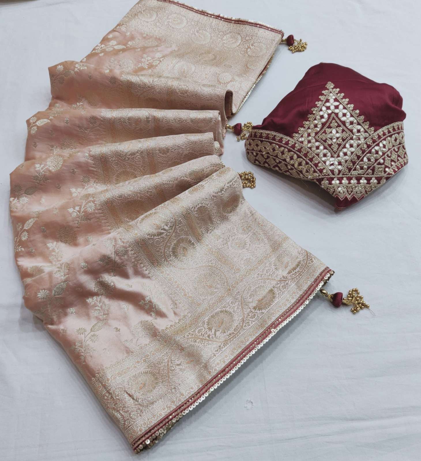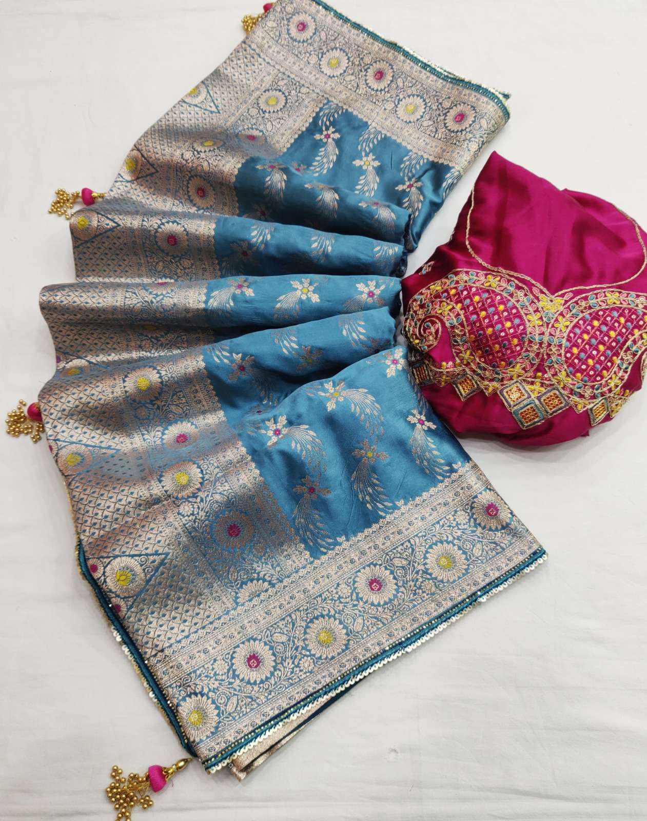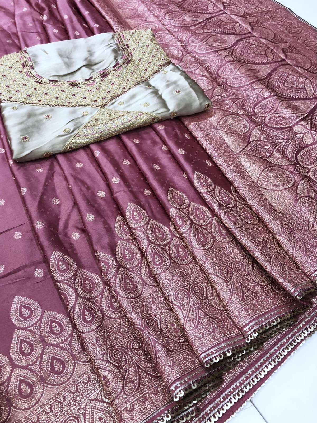 - Pure Sattin based fancy fabric - Beautiful lace border - Contrast design - Heavy designer embroidered blouse