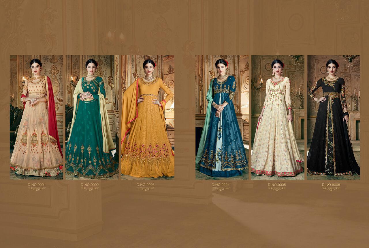*Hiiii........* *Our awesome series* *"Kyra* *Now New volume* *"Kyra-vo 9* *Top.heavy gourgette* *Inner:silk print* *Bottom :dull santoon* *Dupatta:pure naznin* *Price: only :1795/-* *Designes:6* GST 5 Percent Extra. Series 9001 to 9006. *Desptch-24?04?2019* * |