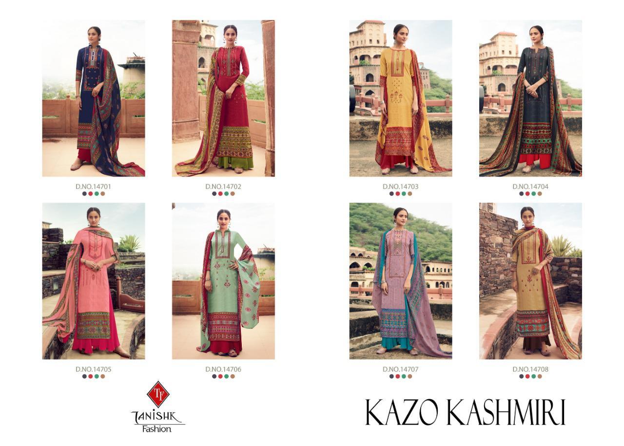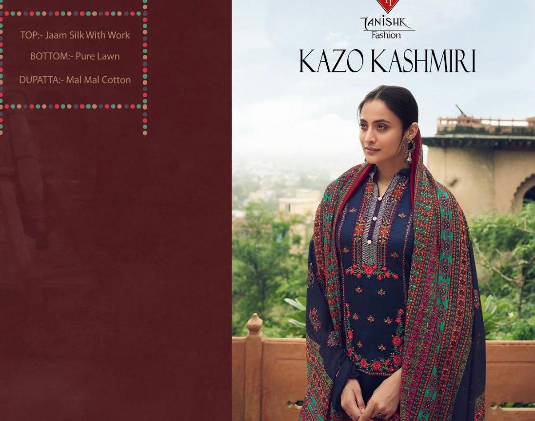 Buy Online Kazo Kashmiri By Tanishk Dress Materials Wholesale Supplier And Dealer Gujarat 8 Pcs of Full Catalogue at Wholesale Price. Looking for Kazo Kashmiri By Tanishk Dress Materials Wholesale Supplier And Dealer Gujarat Full Catalouge at Best Price? Buy Now Kazo Kashmiri By Tanishk Dress Materials Wholesale Supplier And Dealer Gujarat at Wholesale Rate of Rs 5400 with Total 8 Pcs from authroized dealer and supplier of Tanishk fashion Brand. Cost of Each piece is just only Rs 675 which is very low and affordable price to resale the product in your retail store ,This is Surat based Wholesale Supplier & Dealer of Tanishk fashion Brand. Click on Brand name to Know more about Tanishk fashion Brand's products.Call or Whatsapp on 9898838984 for booking or enquiry