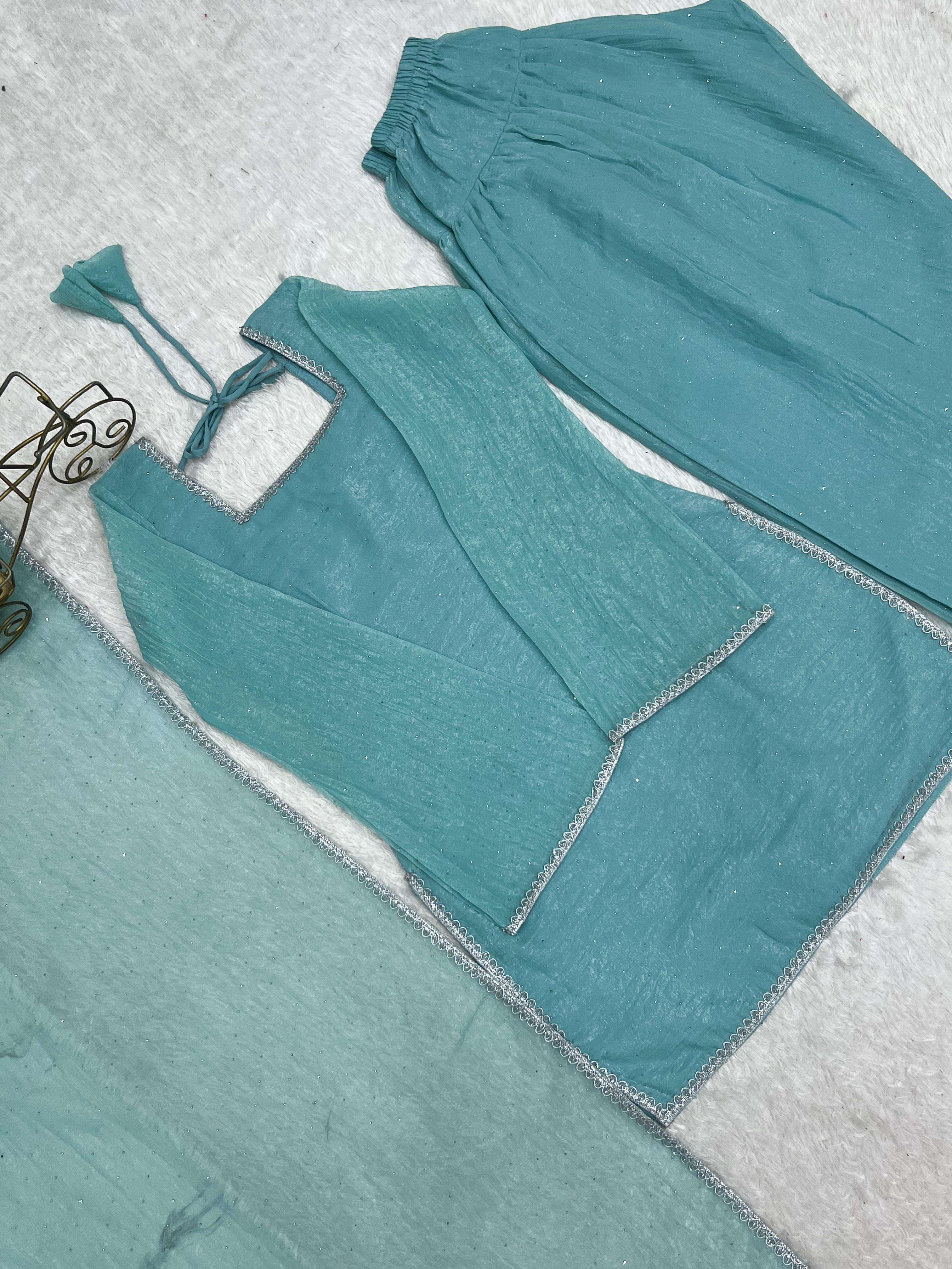 *PRESENTING NEW SPECIAL FARSHI SALWAR SUIT CRUNCHY SILK FABRIC WITH SIROSKI WORK,TOP WITH DUPPTA SET,SALWAR READY TO WEAR*