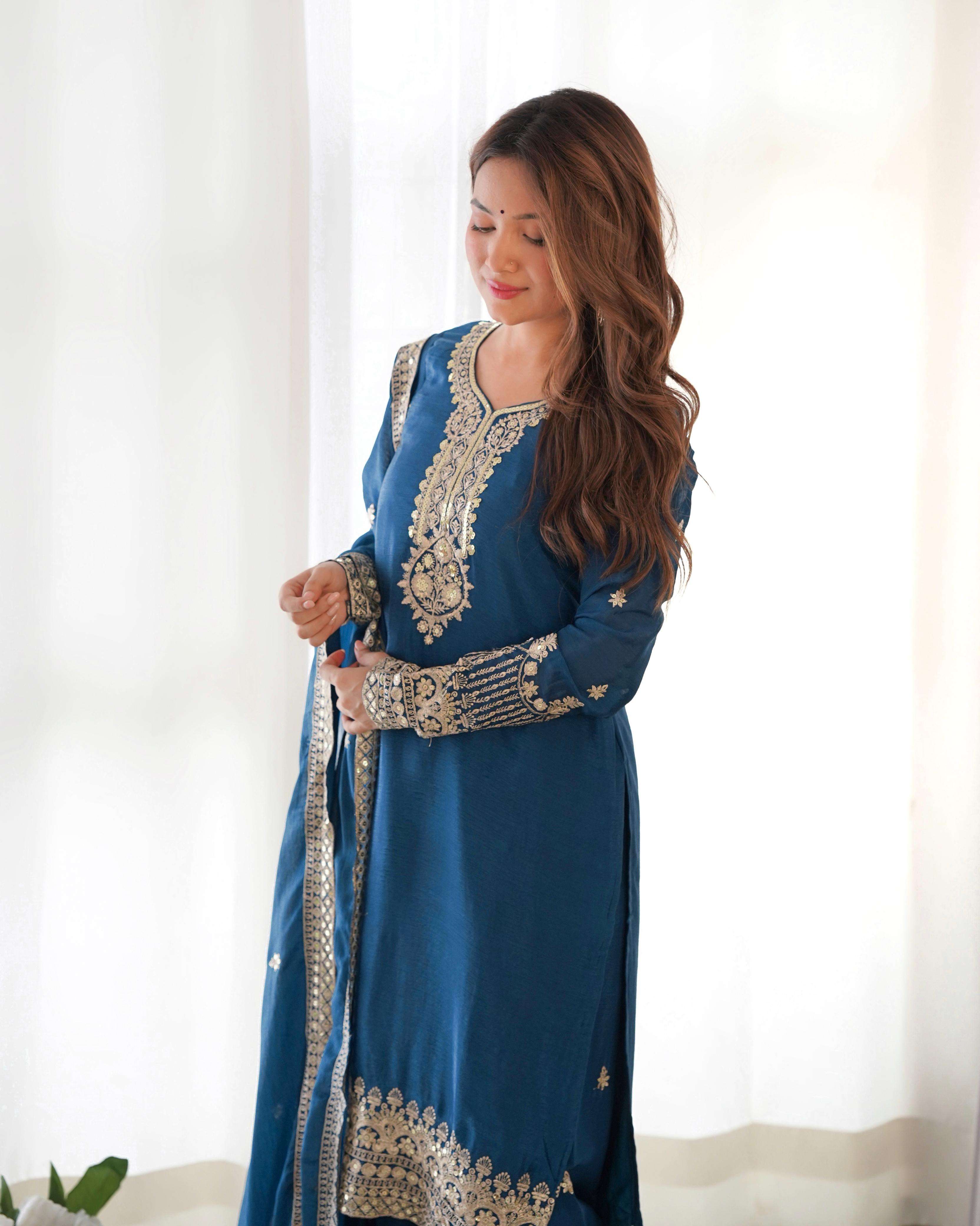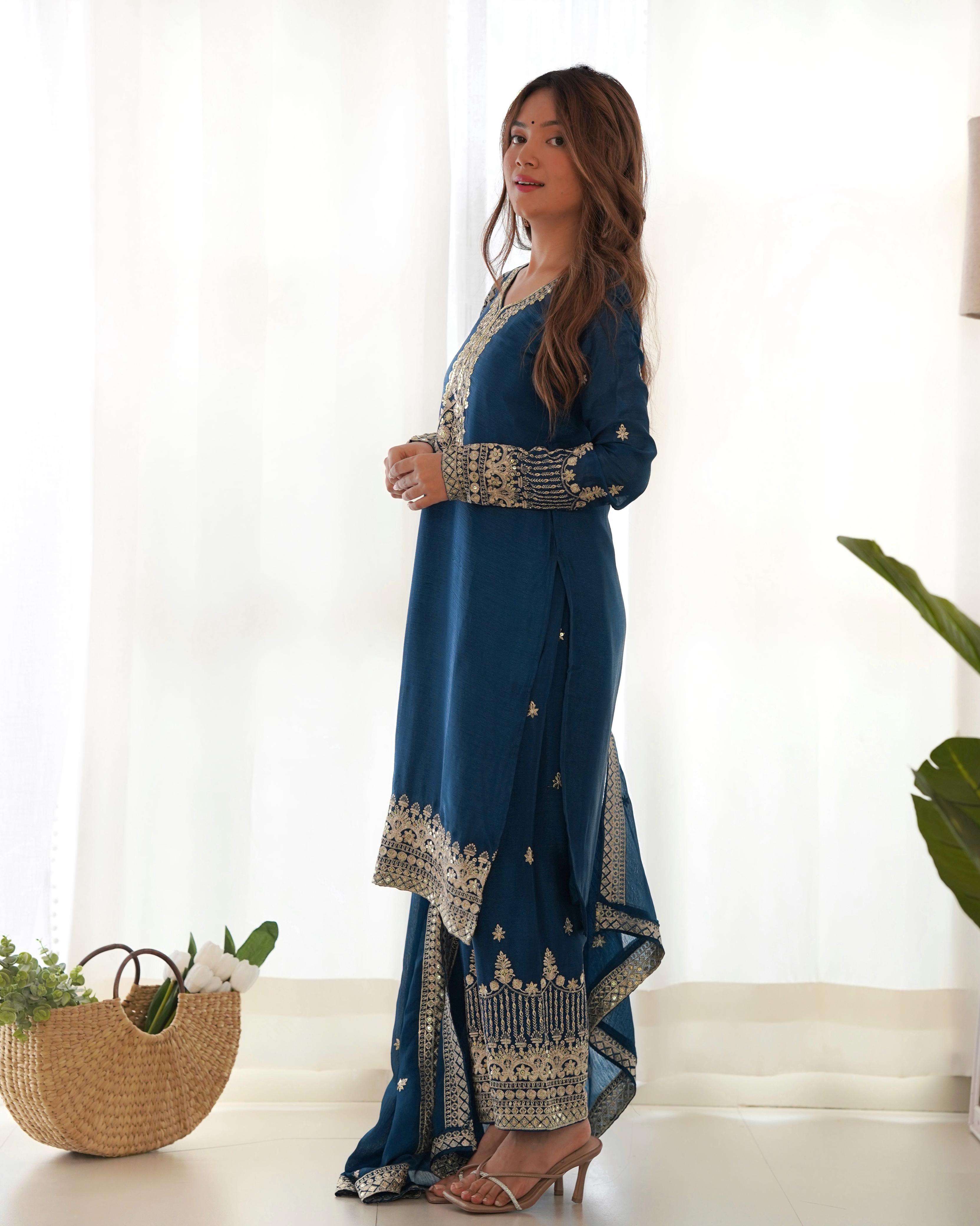 *PRESENTING NEW BEAUTIFUL PURE CHINON SILK FABRIC STRAIGHT FIT KURTA WITH DUPPTA SET,TROUSERS,READY TO WEAR*