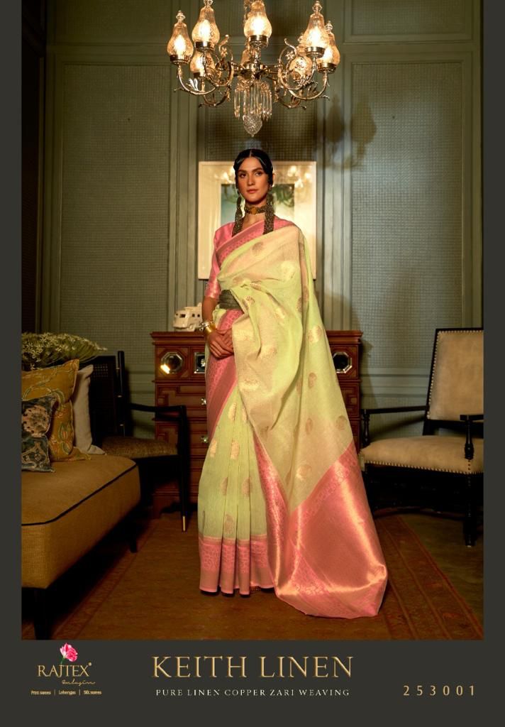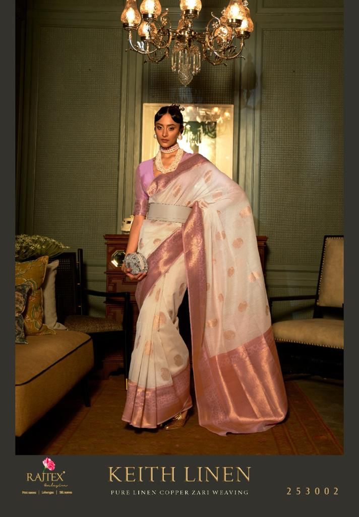 Brand - Raj Tex Type - saree Catlog name - KEITH LINEN. Series - 253001 to 253006. *KEITH LINEN* *PURE LINEN + COPPER ZARI WEAVING. * *LAUNCHING NOW!* ?? *1525?* per pcs Set @ loose & Singel *Today Delivery * *Give your orders if any*. 100+single |