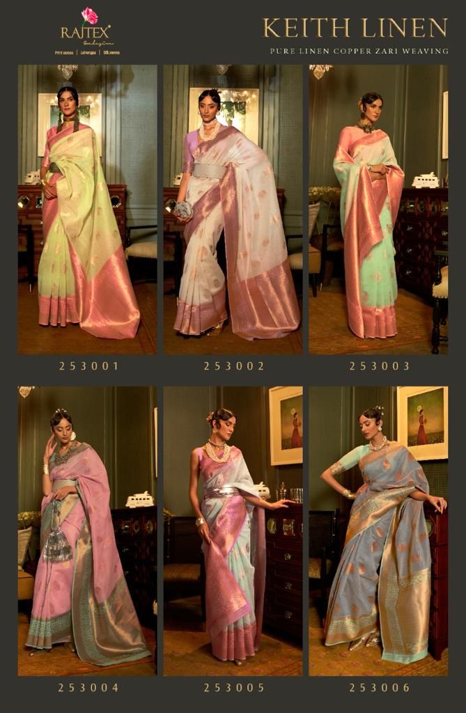 Keith Linen Series 253001 To 253006 By Raj Tex Designer Saree Single And Set Stockiest And Supplier From Surat
