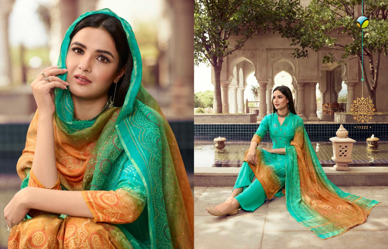 *KERVIN - POONAM* by Vinay *FABRIC DETAILS* *PURE COTTON SILK TOP* *PURE COTTON SATIN BOTTOM* *PURE MASLIN JACQUARD DUAPTTA* Set To Set . GST 5 Percent Extra. Delivery 6-7 days . |