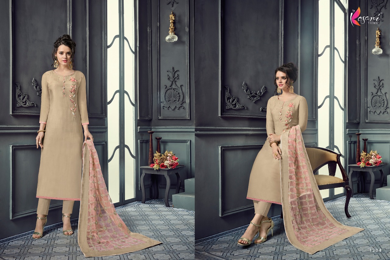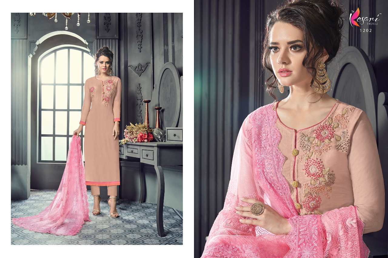Kesari Trendz Maslin Vol 1 1201 Series Designer Suit Catlog Wholesale Dealer Surat
