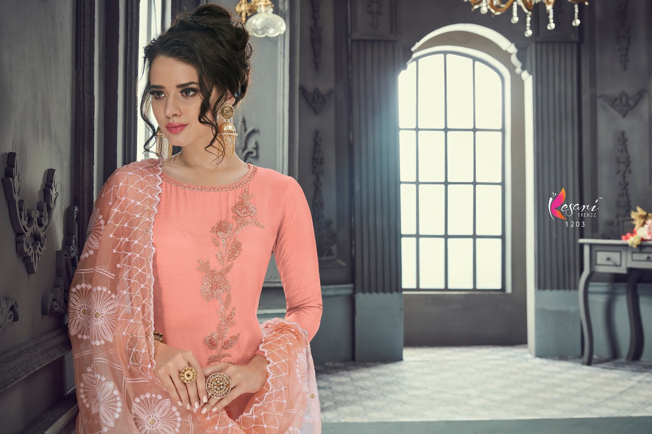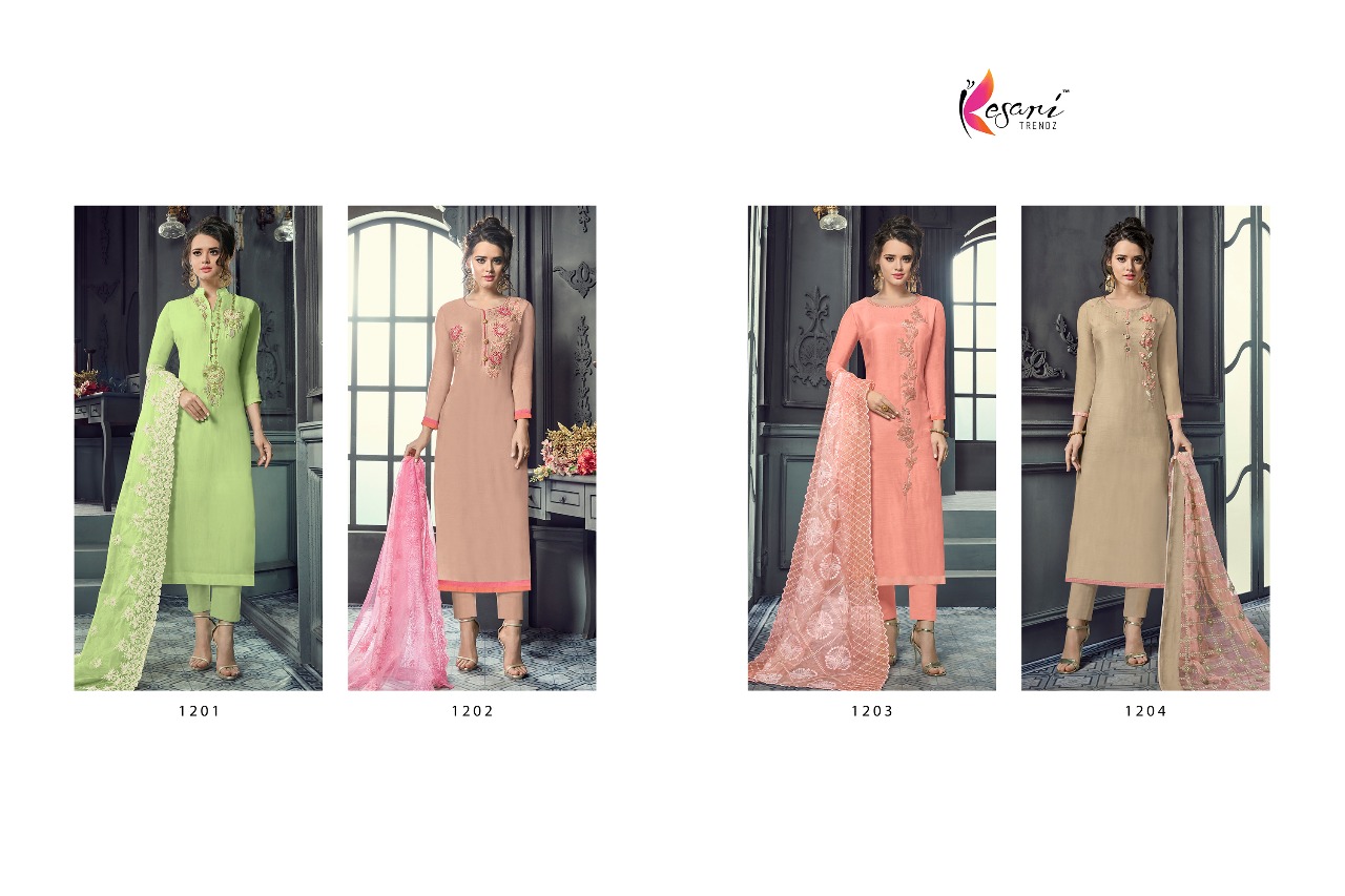 Buy Online Kesari Trendz Maslin Vol 1 1201 Series Designer Suit Catlog Wholesale Dealer Surat 4 Pcs of Full Catalogue at Wholesale Price. Looking for Kesari Trendz Maslin Vol 1 1201 Series Designer Suit Catlog Wholesale Dealer Surat Full Catalouge at Best Price? Buy Now Kesari Trendz Maslin Vol 1 1201 Series Designer Suit Catlog Wholesale Dealer Surat at Wholesale Rate of Rs 4796 with Total 4 Pcs from authroized dealer and supplier of KESARI TRENDZ Brand. Cost of Each piece is just only Rs 1199 which is very low and affordable price to resale the product in your retail store ,This is Surat based Wholesale Supplier & Dealer of KESARI TRENDZ Brand. Click on Brand name to Know more about KESARI TRENDZ Brand's products.Call or Whatsapp on 9898838984 for booking or enquiry