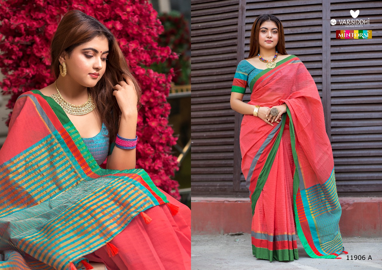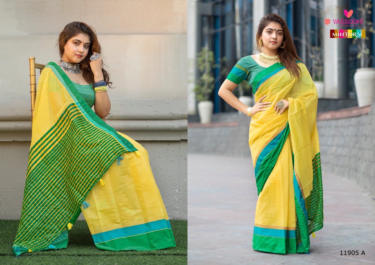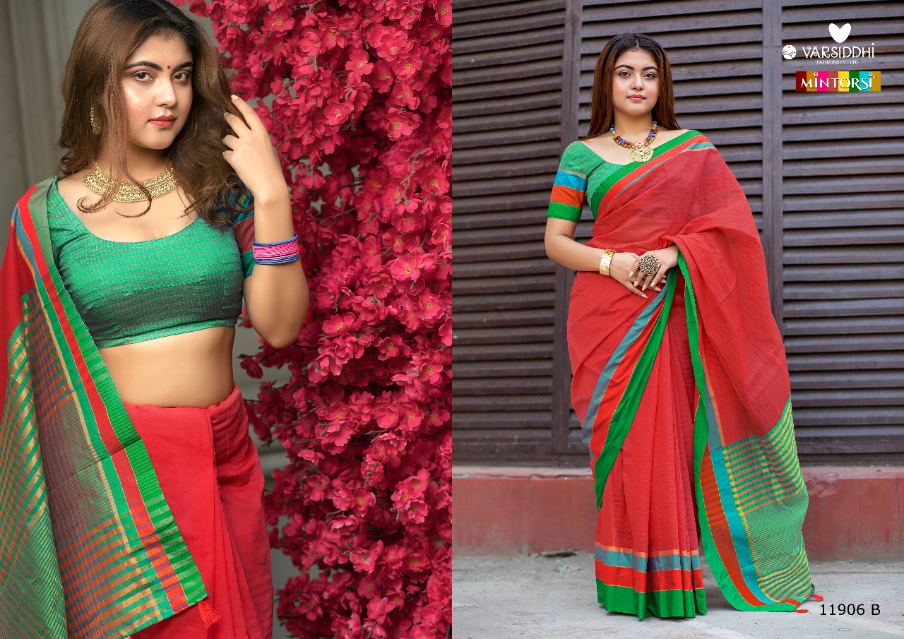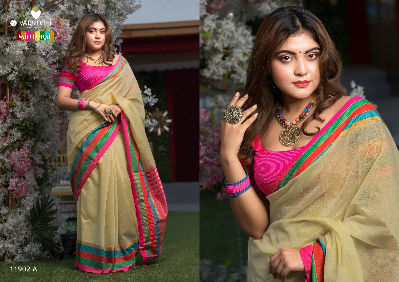 Buy Online Keshar Cotton Silk Saree By Mintorsi Series 11901 A Cotton Silk Sarees Wholesale Supplier Gujarat 12 Pcs of Full Catalogue at Wholesale Price. Looking for Keshar Cotton Silk Saree By Mintorsi Series 11901 A Cotton Silk Sarees Wholesale Supplier Gujarat Full Catalouge at Best Price? Buy Now Keshar Cotton Silk Saree By Mintorsi Series 11901 A Cotton Silk Sarees Wholesale Supplier Gujarat at Wholesale Rate of Rs 5100 with Total 12 Pcs from authroized dealer and supplier of VARSIDDHI SAREE Brand. Cost of Each piece is just only Rs 425 which is very low and affordable price to resale the product in your retail store ,This is Surat based Wholesale Supplier & Dealer of VARSIDDHI SAREE Brand. Click on Brand name to Know more about VARSIDDHI SAREE Brand's products.Call or Whatsapp on 9898838984 for booking or enquiry