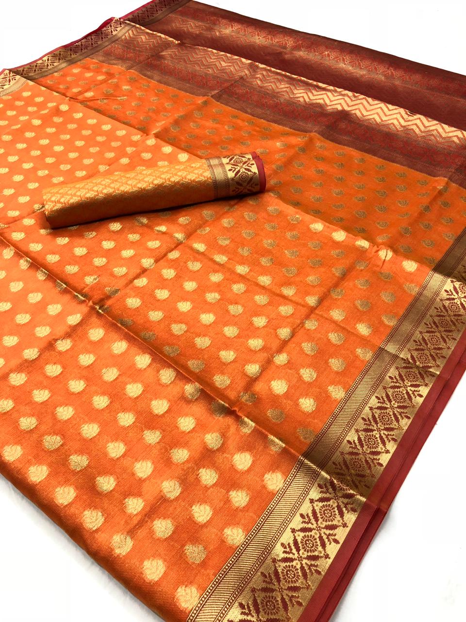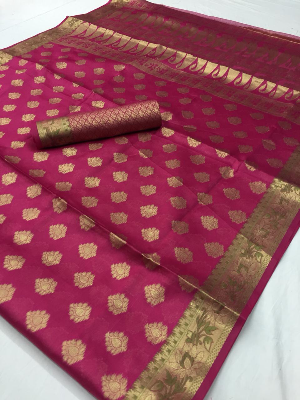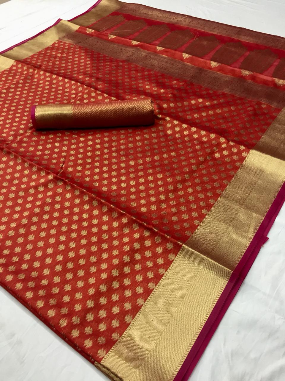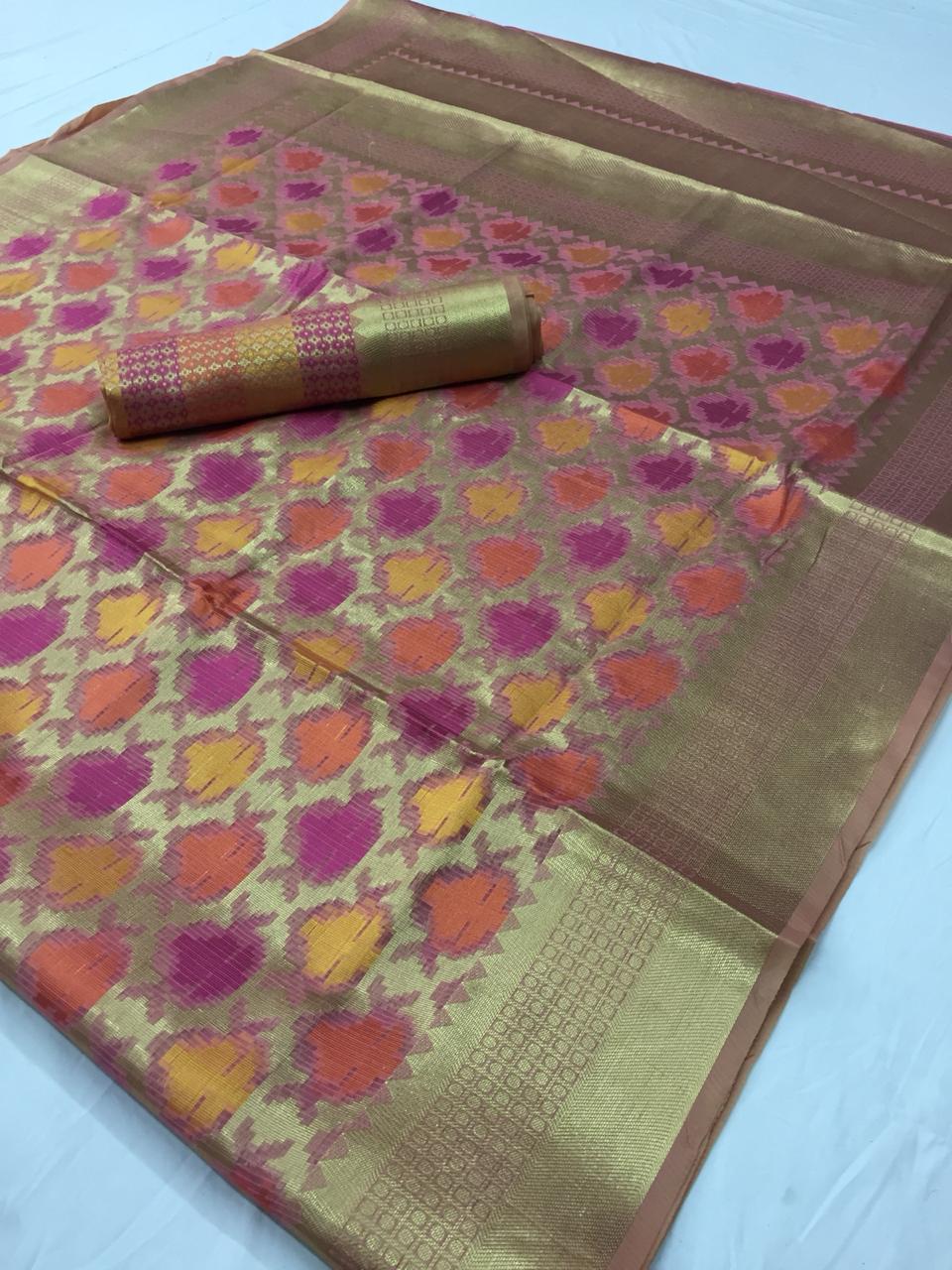 *Ketaki Silk* by Raj Tex . *Organza + Tissue Silk Sarees* series -64001 to 64010. New catlog by Raj tex . Rate - 1200? per Pcs . GST 5 Percent Extra. Delivery from today Please note you cannot sell below company Rate . *RAJTEX FABRICS* |