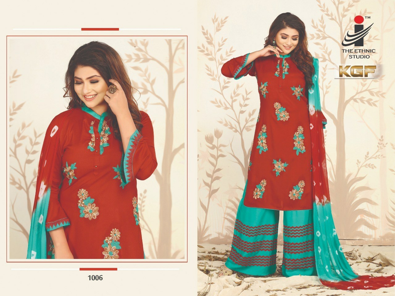 Buy Online Kgf By The Ethnic Studio Reyon Printed Ready To Wear Suits Wholesale Supplier And Dealer Surat 8 Pcs of Full Catalogue at Wholesale Price. Looking for Kgf By The Ethnic Studio Reyon Printed Ready To Wear Suits Wholesale Supplier And Dealer Surat Full Catalouge at Best Price? Buy Now Kgf By The Ethnic Studio Reyon Printed Ready To Wear Suits Wholesale Supplier And Dealer Surat at Wholesale Rate of Rs 5592 with Total 8 Pcs from authroized dealer and supplier of Brand. Cost of Each piece is just only Rs 699 which is very low and affordable price to resale the product in your retail store ,This is Surat based Wholesale Supplier & Dealer of Brand. Click on Brand name to Know more about Brand's products.Call or Whatsapp on 9898838984 for booking or enquiry