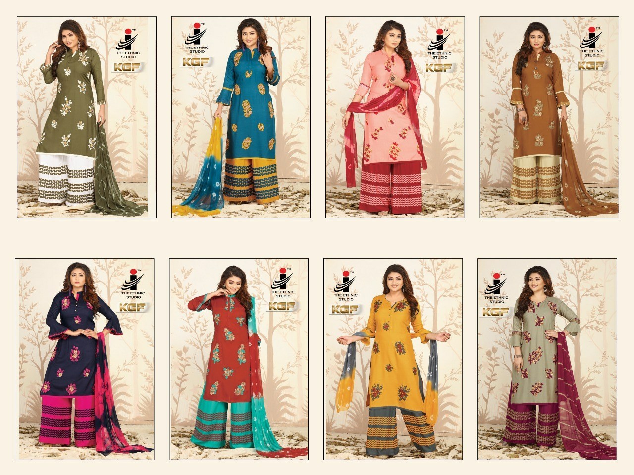 Kgf By The Ethnic Studio Reyon Printed Ready To Wear Suits Wholesale Supplier And Dealer Surat