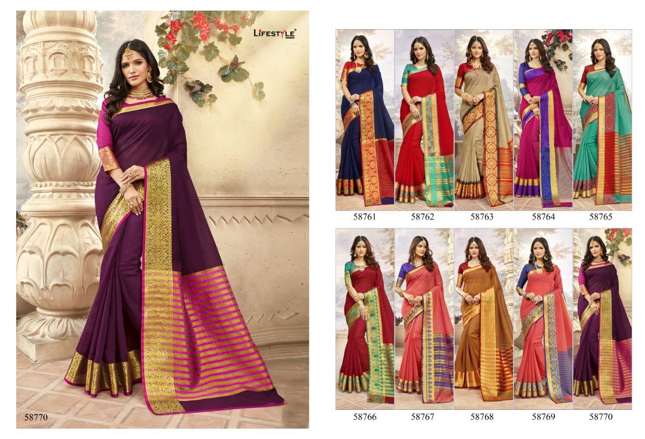 Buy Online Khadi Silk Vol 19 By Lifestyle 58761 Series Fancy Khadi Cotton Silk Saree Collection Wholesaler Surat 10 Pcs of Full Catalogue at Wholesale Price. Looking for Khadi Silk Vol 19 By Lifestyle 58761 Series Fancy Khadi Cotton Silk Saree Collection Wholesaler Surat Full Catalouge at Best Price? Buy Now Khadi Silk Vol 19 By Lifestyle 58761 Series Fancy Khadi Cotton Silk Saree Collection Wholesaler Surat at Wholesale Rate of Rs 5370 with Total 10 Pcs from authroized dealer and supplier of LIFESTYLE Brand. Cost of Each piece is just only Rs 537 which is very low and affordable price to resale the product in your retail store ,This is Surat based Wholesale Supplier & Dealer of LIFESTYLE Brand. Click on Brand name to Know more about LIFESTYLE Brand's products.Call or Whatsapp on 9898838984 for booking or enquiry