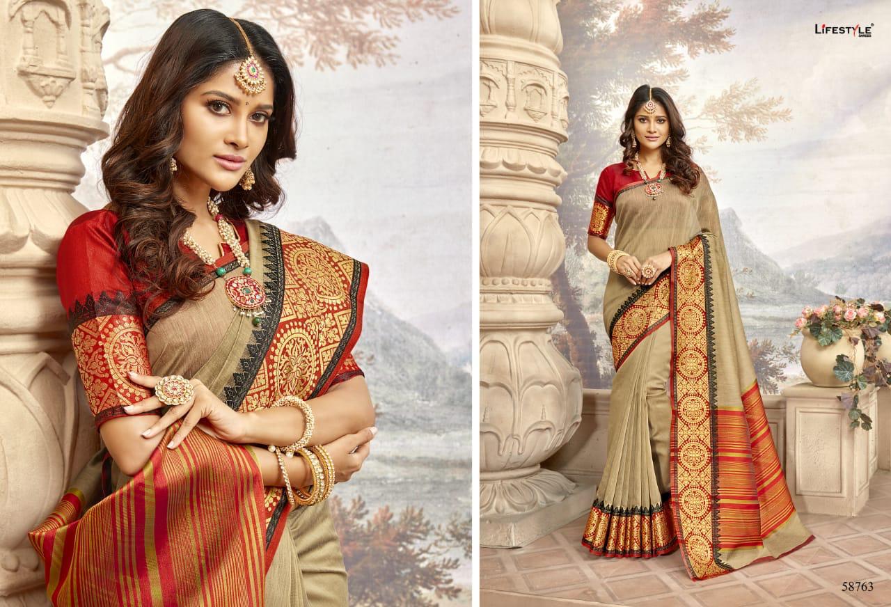 Khadi Silk Vol 19 By Lifestyle 58761 Series Fancy Khadi Cotton Silk Saree Collection Wholesaler Surat