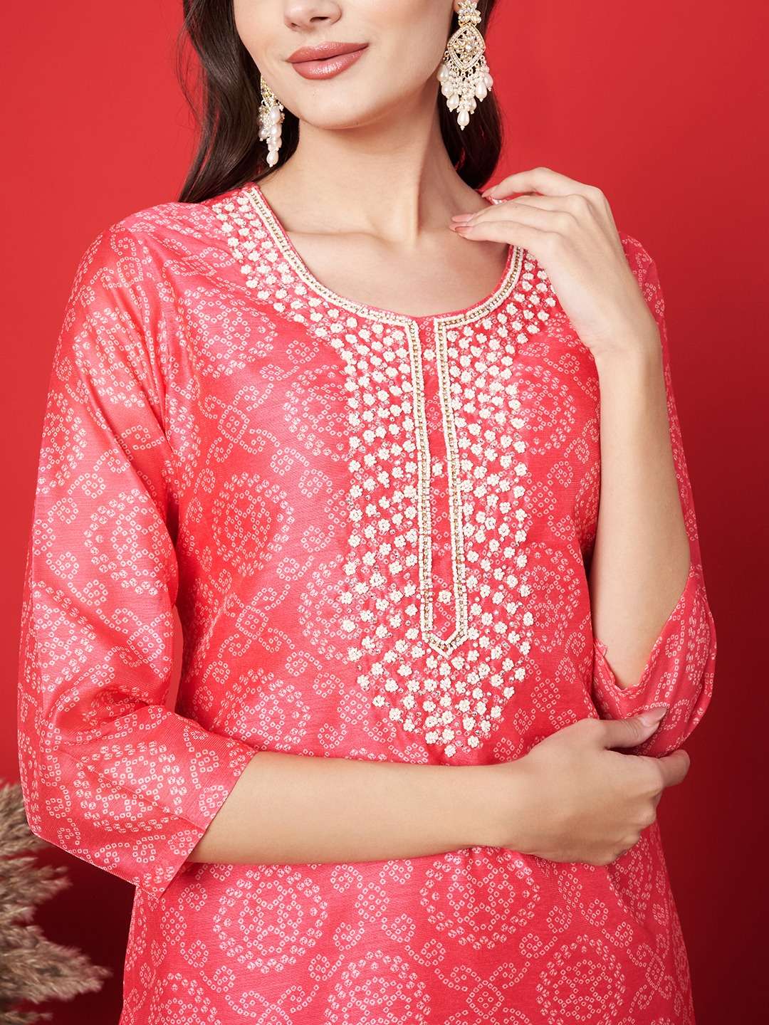 Top : Munga silk bandhani print with Handwork with pure cotton MAL lining