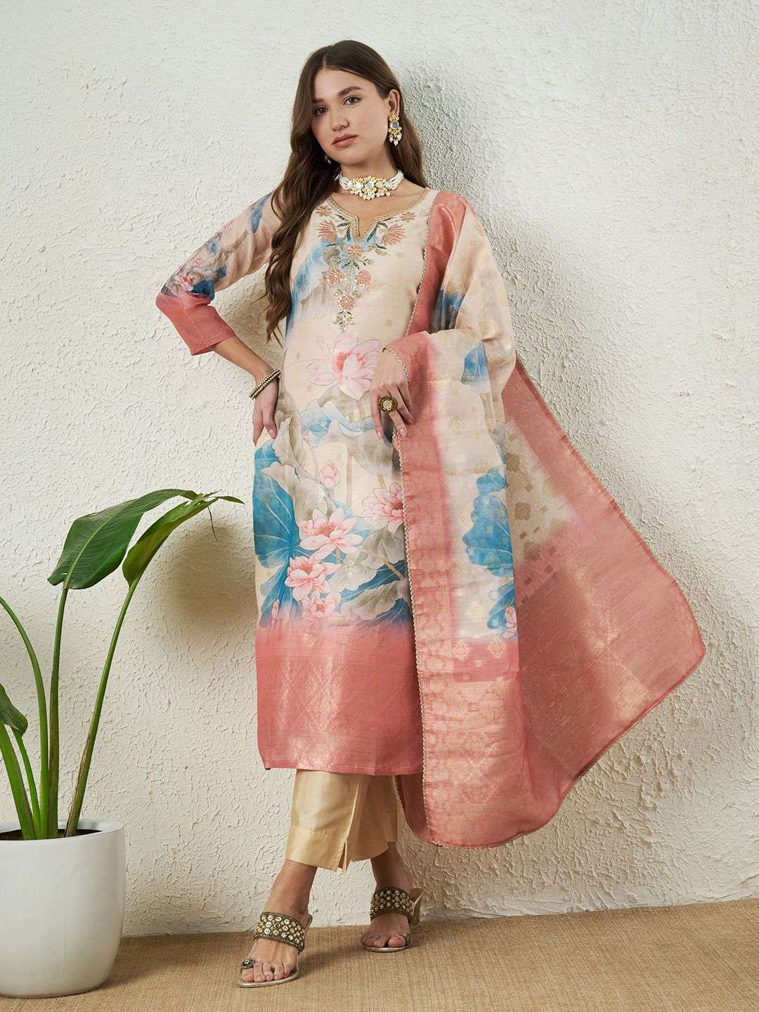 Dn 9832 to 9835 Top Silk jacqured embroidery with cotton lining Bottom silk Dupatta silk Jacqured