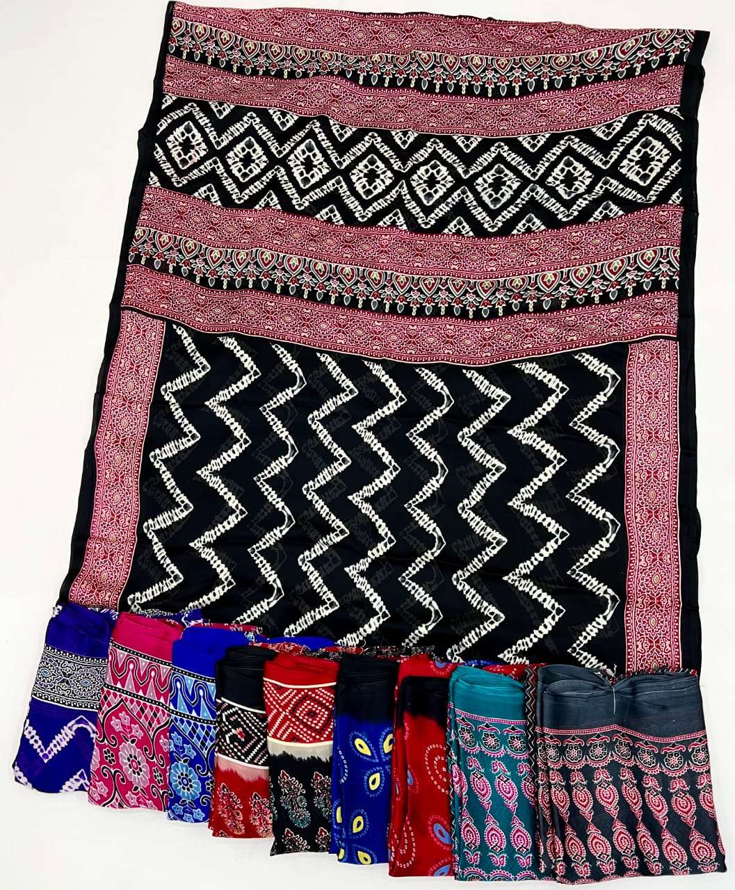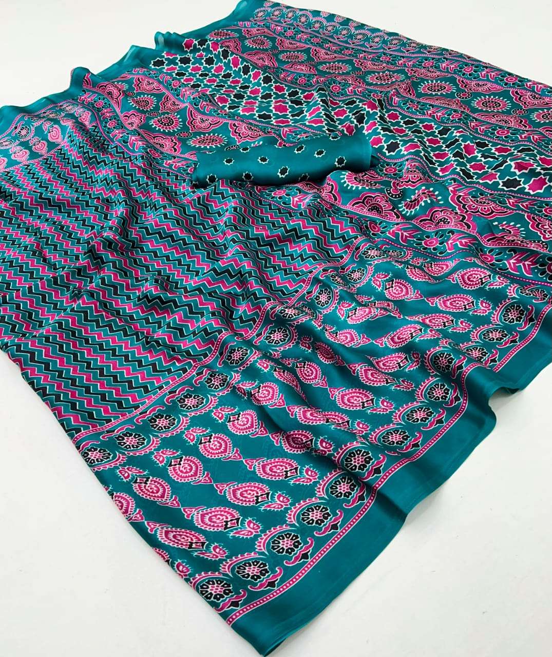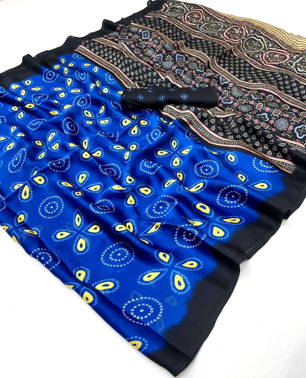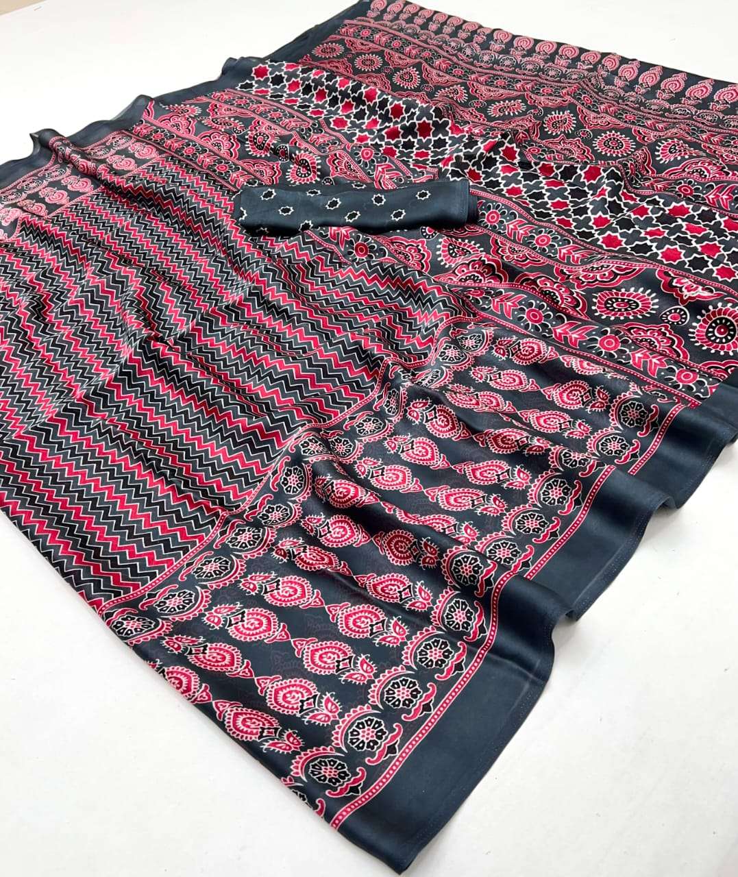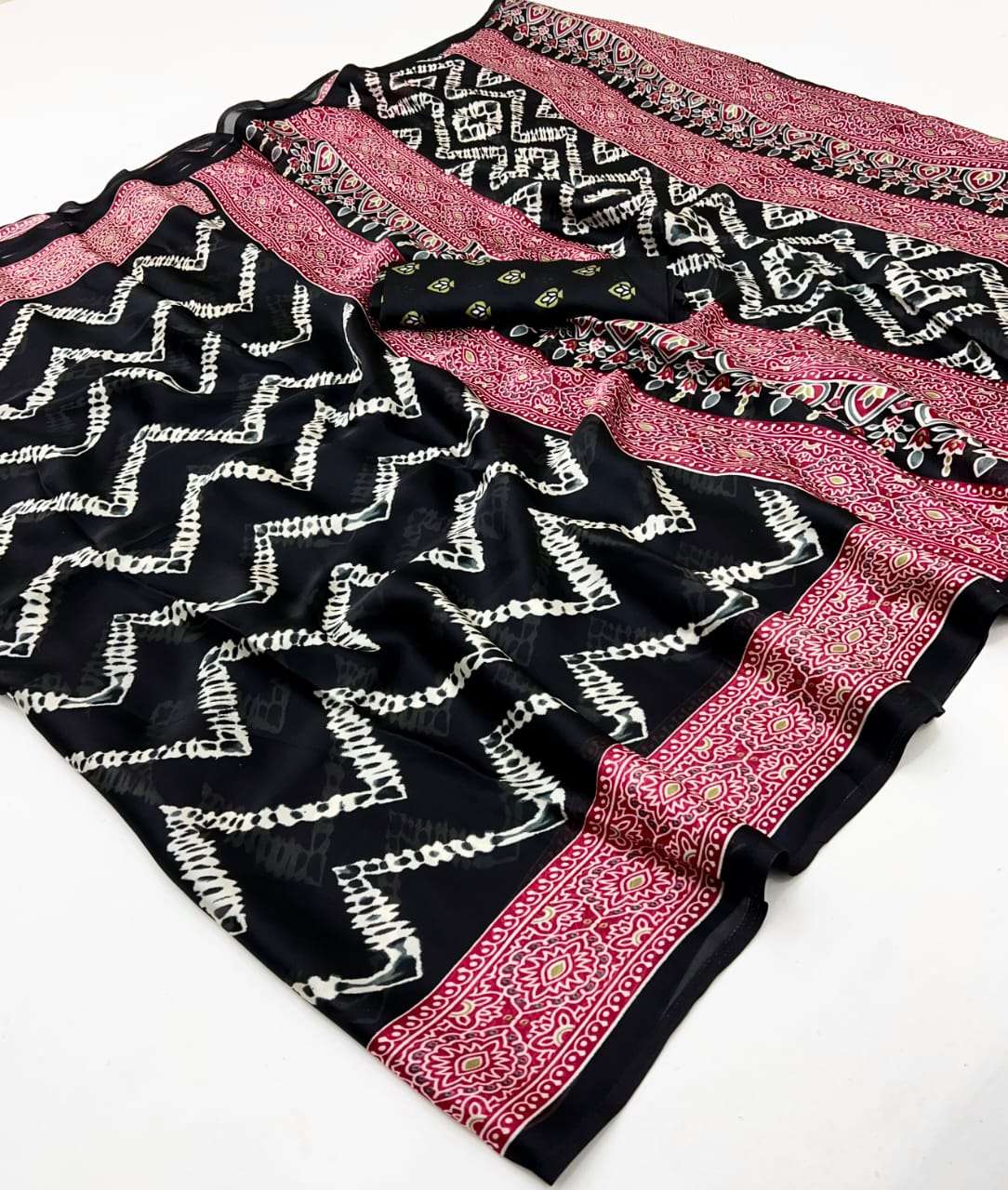 🔰Catalogue:- *KHOJ* *AJRAKH PRINT SATIN GEORGETTE SAREES*