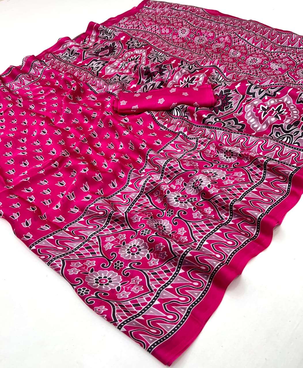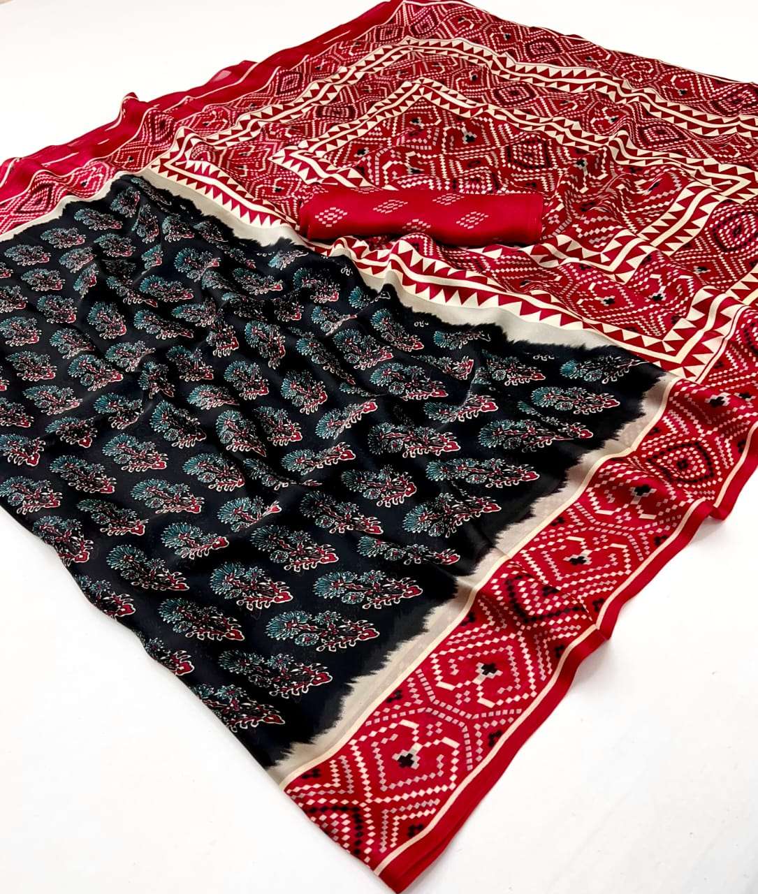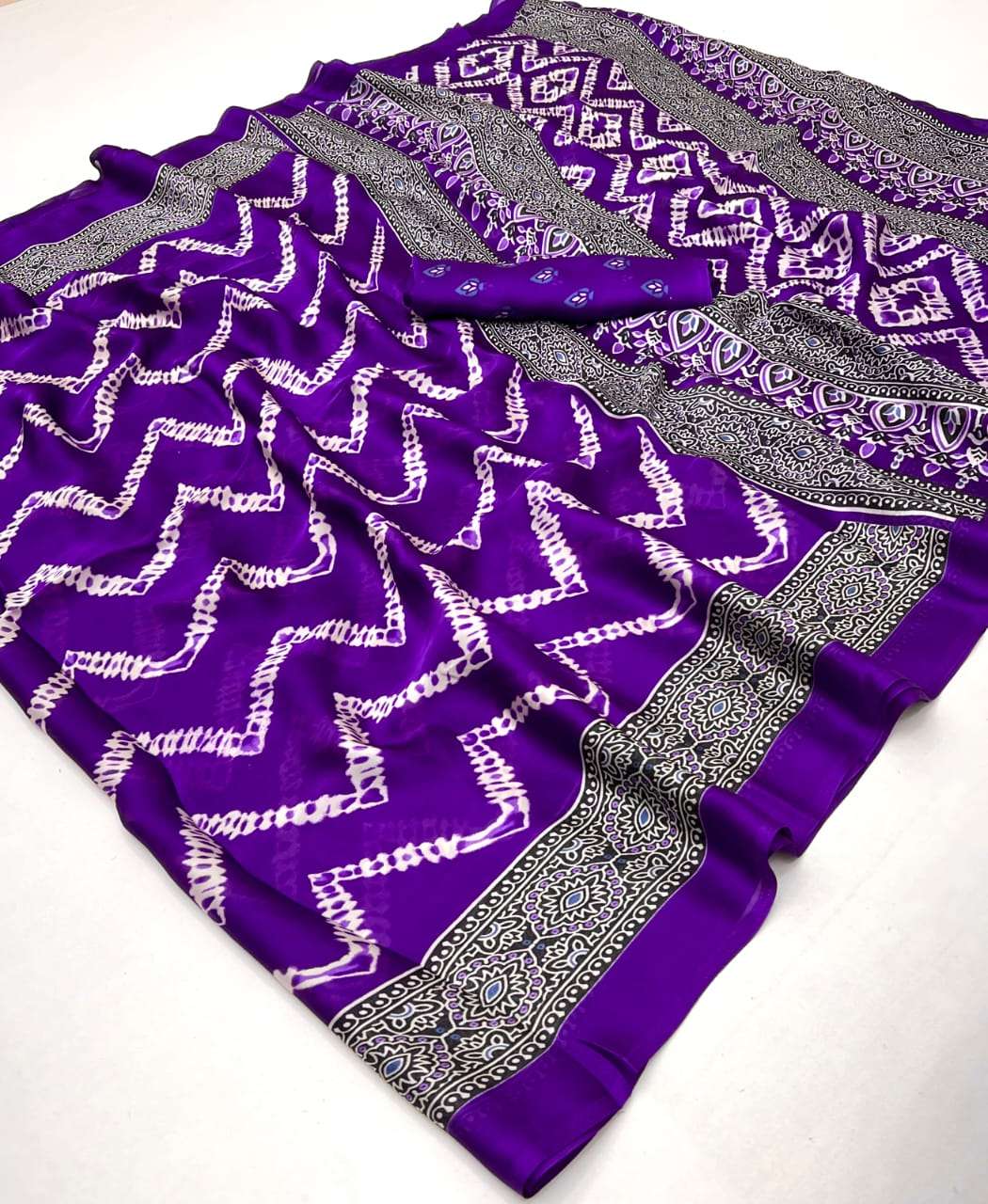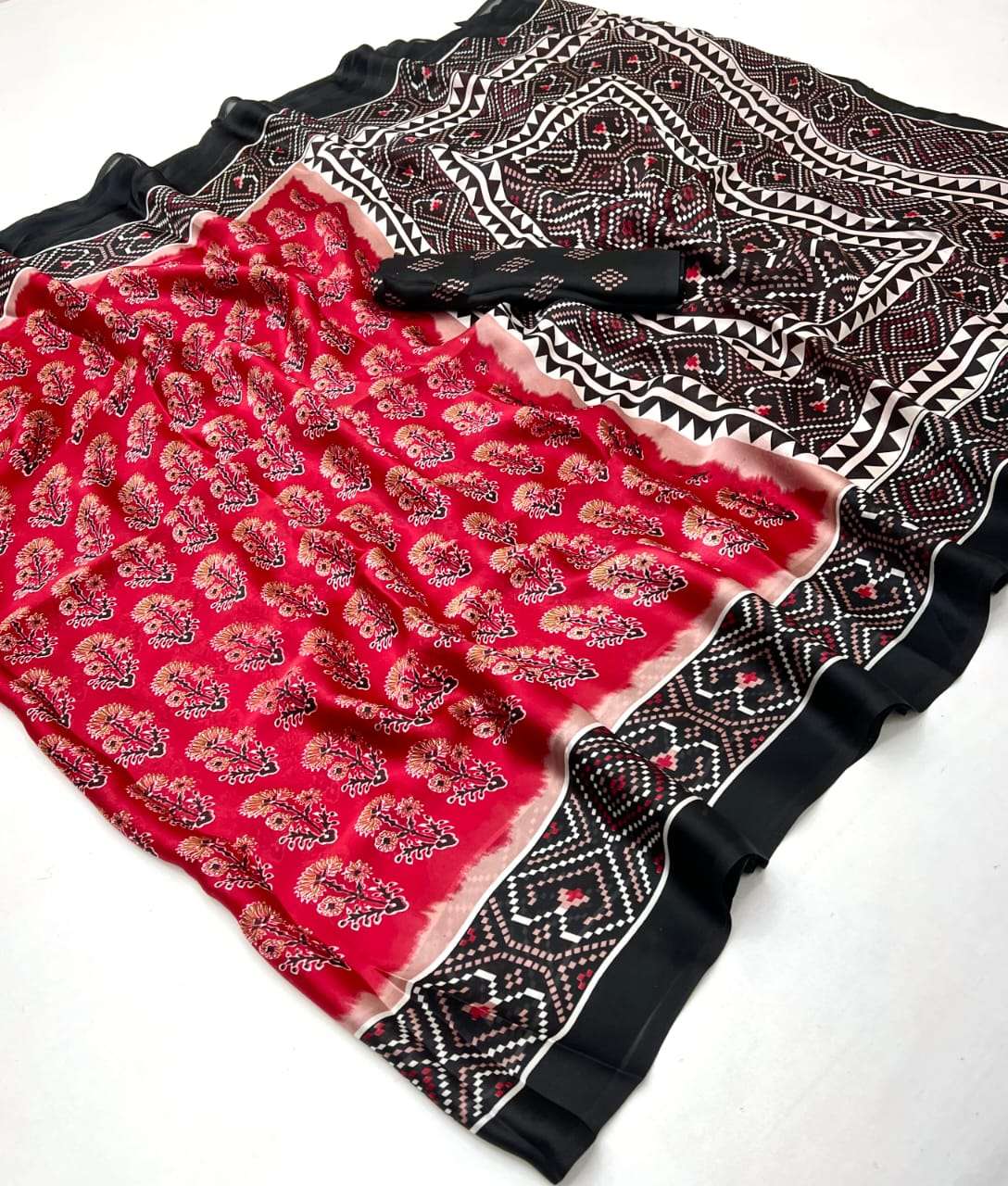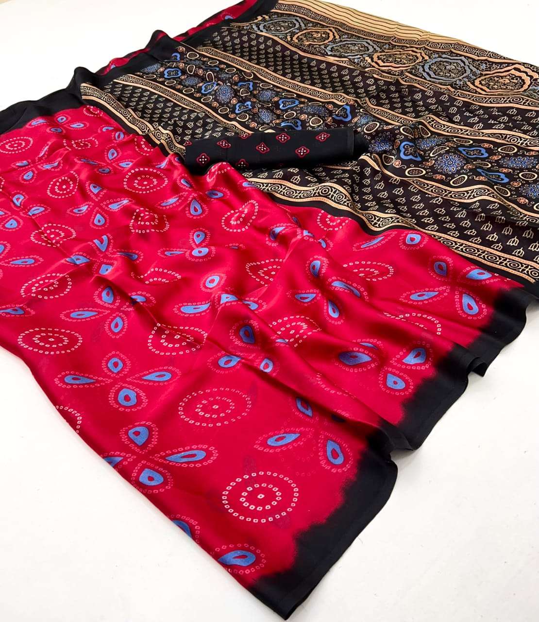 🔰Catalogue:- *KHOJ* *AJRAKH PRINT SATIN GEORGETTE SAREES*