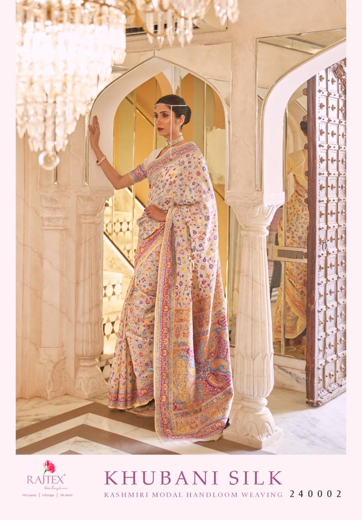 Presenting New Launch By *RAJTEX* ? *CATLOGUE* - *KHUBHANI SILK? ?* ? *Fabric*- KASHMIRI MODAL HANDLOOM WEAVING SAREES ?PRICE:- 1995 /- GST 5% EXTRA ? Book Fast (Singles / Set) ? Ready Stock *?We always trust in Quality* *?Plz Stay Away From Duplicate Products* 100+Singles |