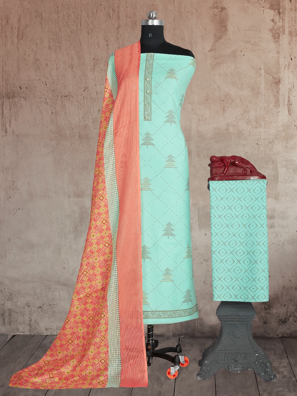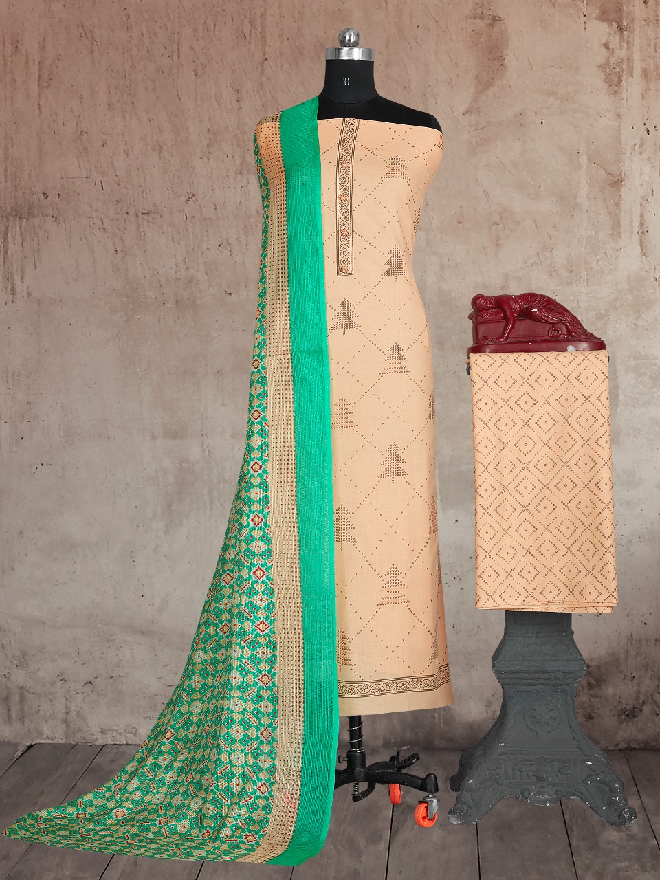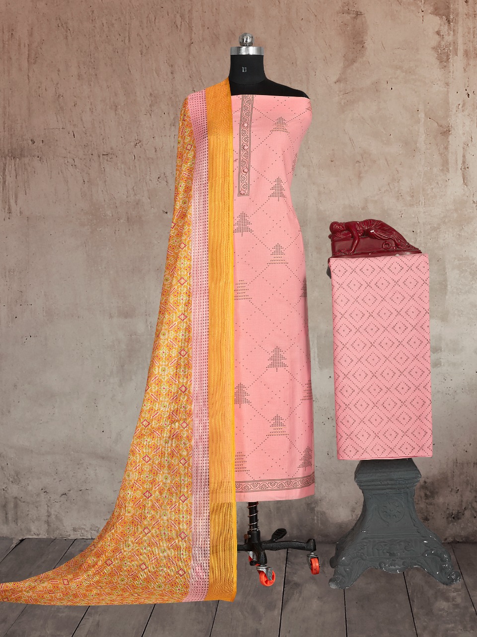 *BIPSON* Brings ..... ```Premium Cotton Collection ``` _ KHUSHBOO - 1464 _ *TOP :-* _ Pure Cotton Gold Print With Work ._ *BOTTOM* :- _ PURE COTTON PRINT ._ *DUPATTA* :- _ KOTA CHEX PRINT ._ *@ 495 /-* Set to set . |