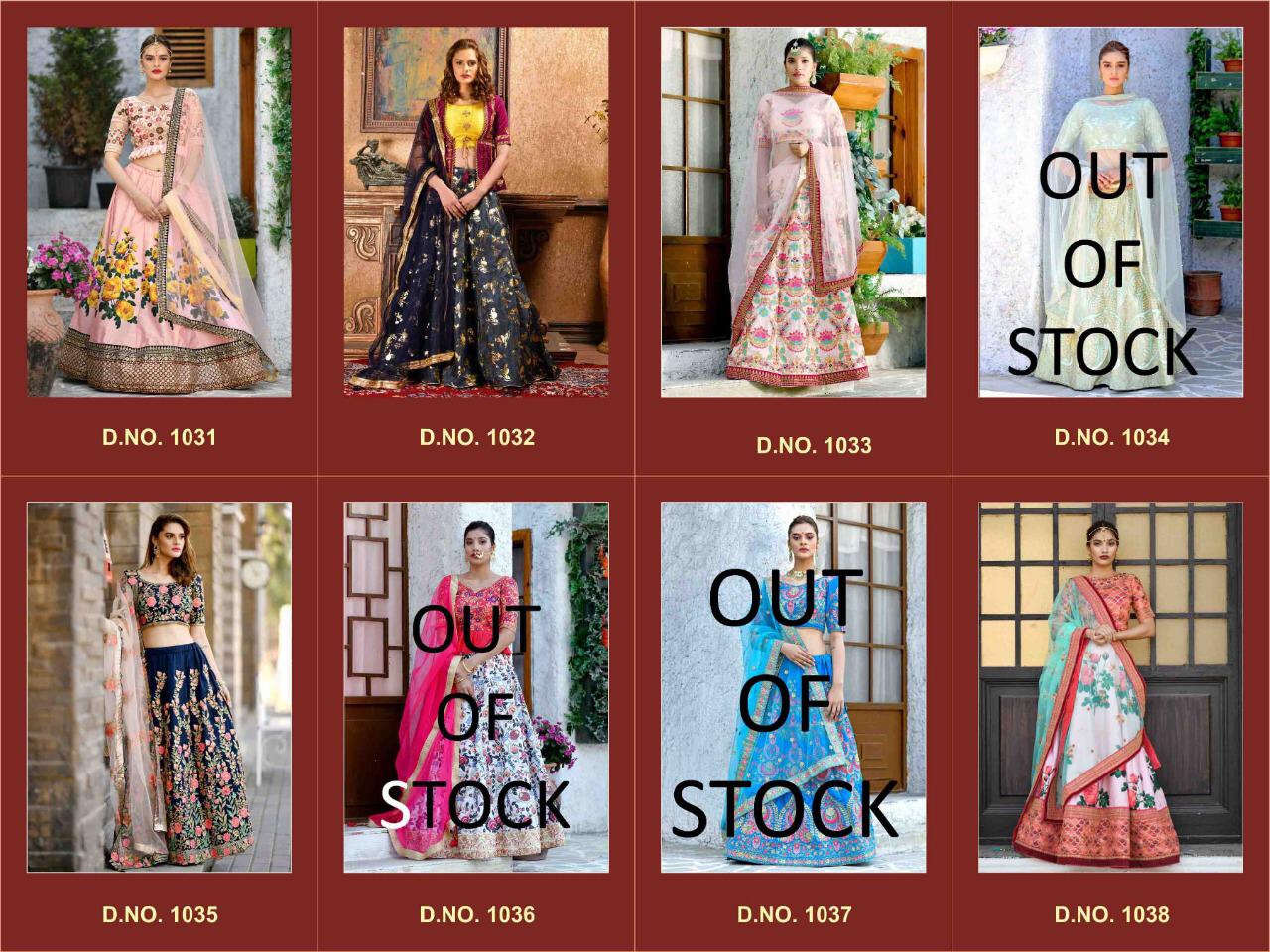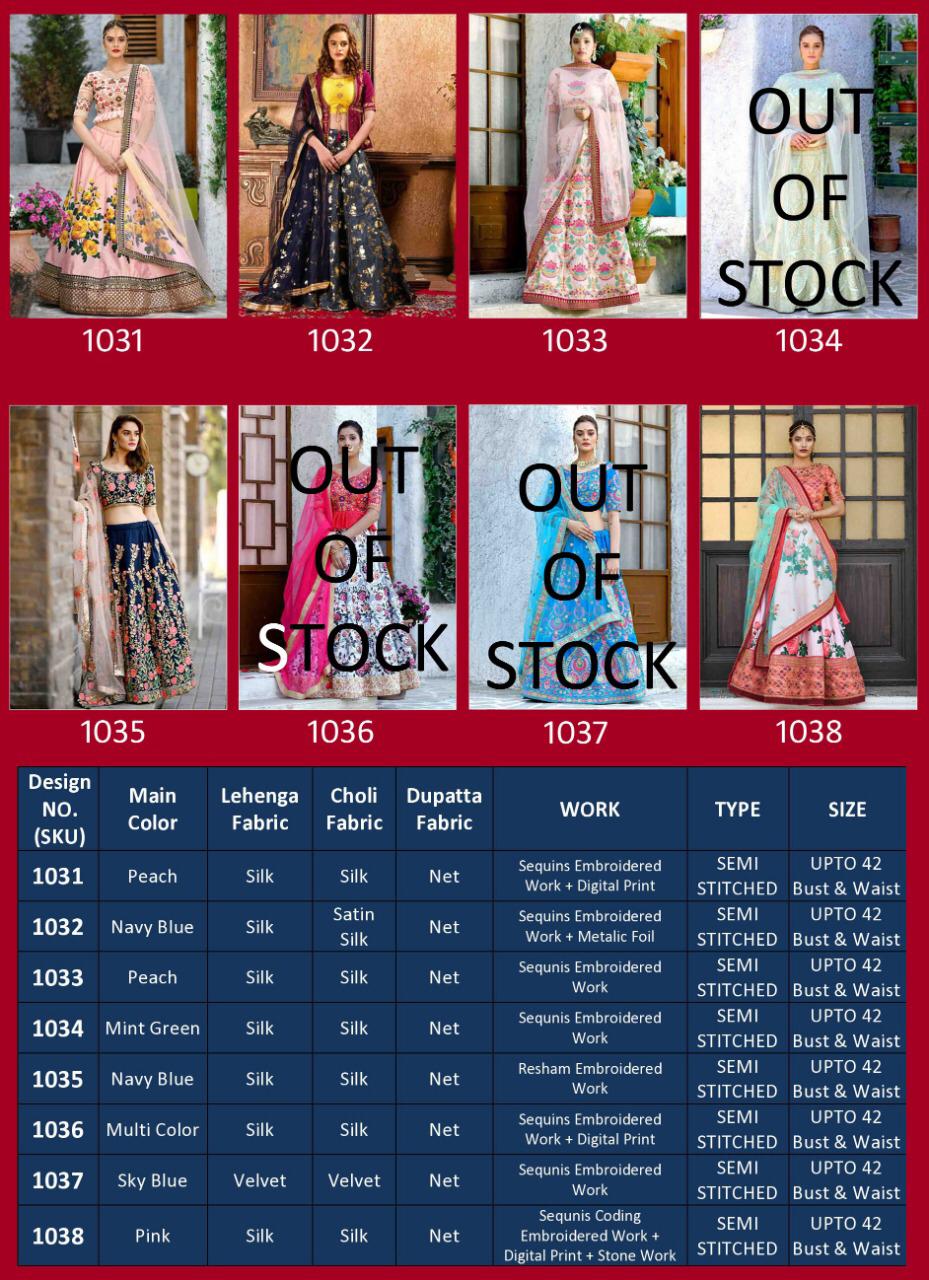 Buy Online Khushboo Series 1031 Designer Party Wear Lehngas Set And Single Wholesale Supplier Gujarat 0 Pcs of Full Catalogue at Wholesale Price. Looking for Khushboo Series 1031 Designer Party Wear Lehngas Set And Single Wholesale Supplier Gujarat Full Catalouge at Best Price? Buy Now Khushboo Series 1031 Designer Party Wear Lehngas Set And Single Wholesale Supplier Gujarat at Wholesale Rate of Rs 0 with Total 0 Pcs from authroized dealer and supplier of BRAND'S Brand. Cost of Each piece is just only Rs 0 which is very low and affordable price to resale the product in your retail store ,This is Surat based Wholesale Supplier & Dealer of BRAND'S Brand. Click on Brand name to Know more about BRAND'S Brand's products.Call or Whatsapp on 9898838984 for booking or enquiry