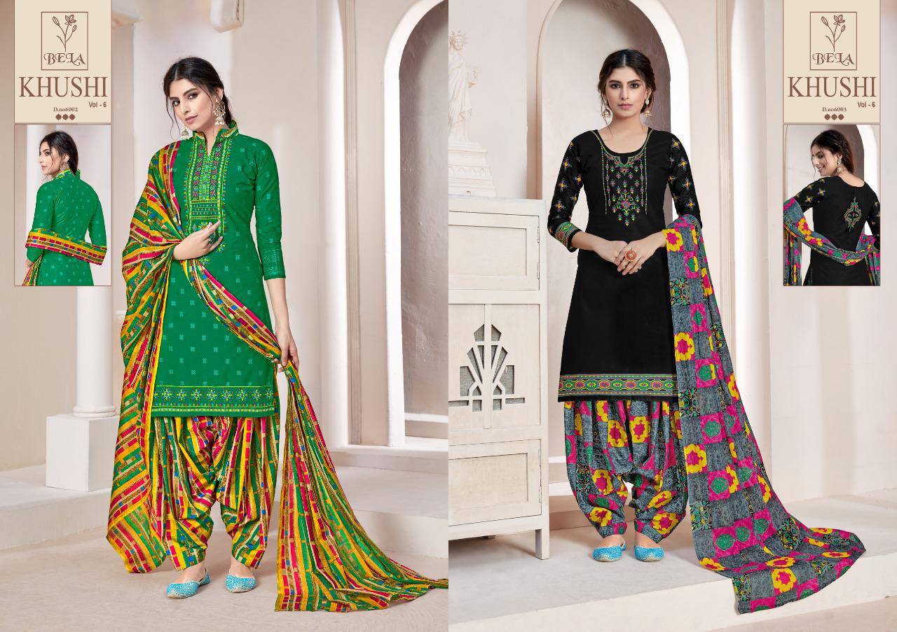 ? *BELA* ? New Vol. *KHUSHI-6* *COTTON DUPATTA* TOP = 2.00MTS BOTTOM = 2.00MTS DUPATTA = 2.00MTS 1? DESIGNS = 10 2? PACKING = 100 3? *NET RATE = NEW RATE* *250+GST (5%)* LAUNCHING *TOMORROW* ALWAYS WITH YOU.. TEAM - *BELA* |