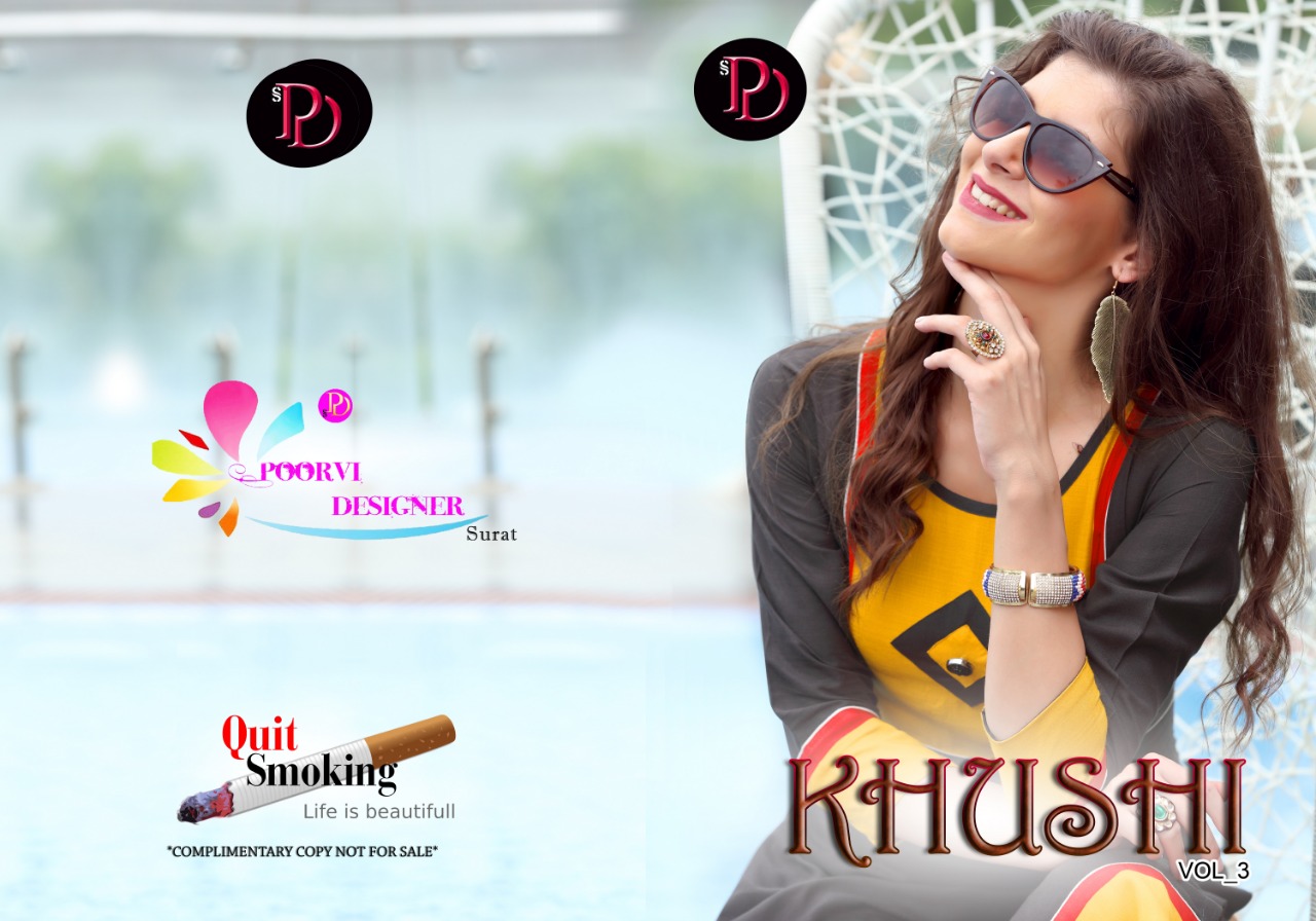 Buy Online Khushi Vol 3 By Poorvi Designer 3001 Series Fancy Reyon Slub Kurti Catlog Wholesale Dealer Surat 8 Pcs of Full Catalogue at Wholesale Price. Looking for Khushi Vol 3 By Poorvi Designer 3001 Series Fancy Reyon Slub Kurti Catlog Wholesale Dealer Surat Full Catalouge at Best Price? Buy Now Khushi Vol 3 By Poorvi Designer 3001 Series Fancy Reyon Slub Kurti Catlog Wholesale Dealer Surat at Wholesale Rate of Rs 3192 with Total 8 Pcs from authroized dealer and supplier of Poonam designer Brand. Cost of Each piece is just only Rs 399 which is very low and affordable price to resale the product in your retail store ,This is Surat based Wholesale Supplier & Dealer of Poonam designer Brand. Click on Brand name to Know more about Poonam designer Brand's products.Call or Whatsapp on 9898838984 for booking or enquiry