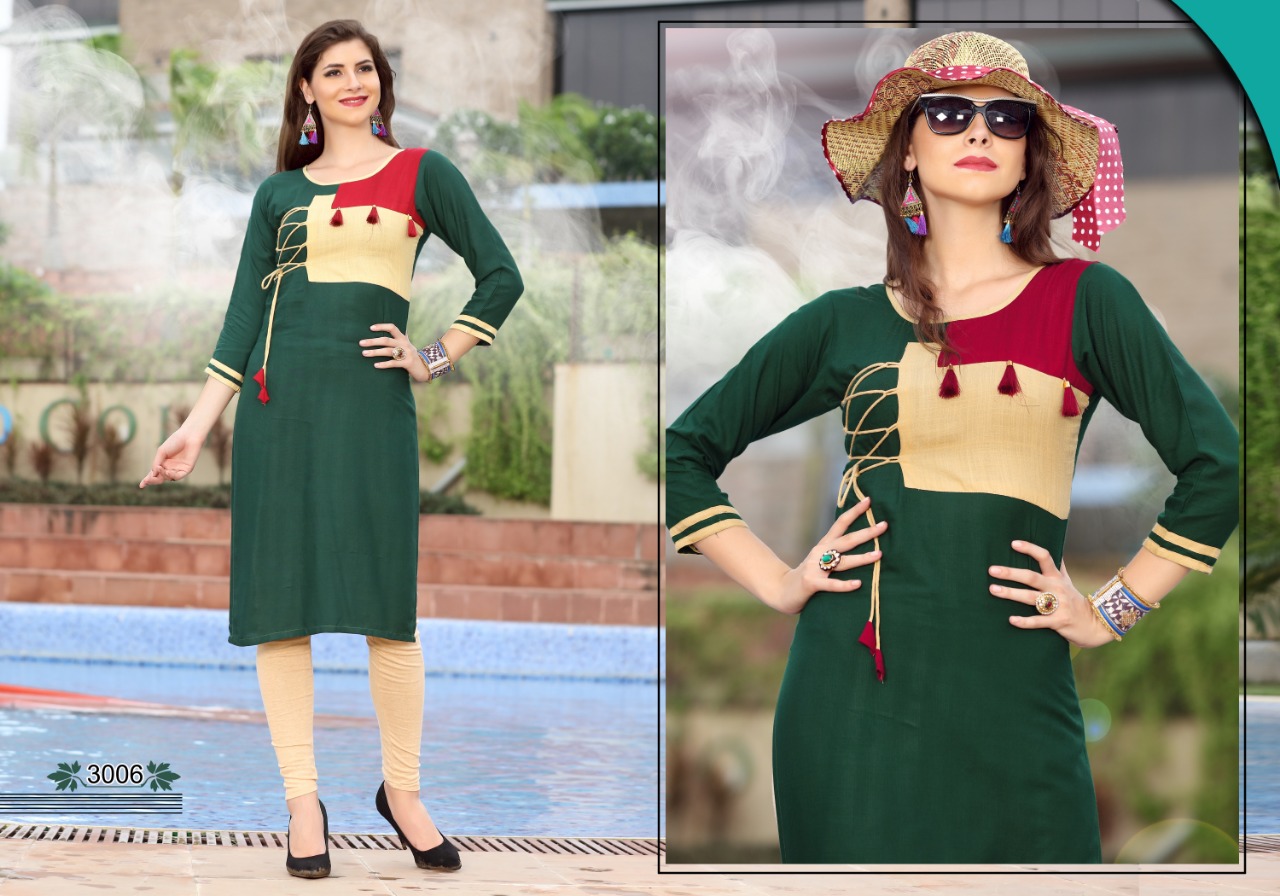 Khushi Vol 3 By Poorvi Designer 3001 Series Fancy Reyon Slub Kurti Catlog Wholesale Dealer Surat