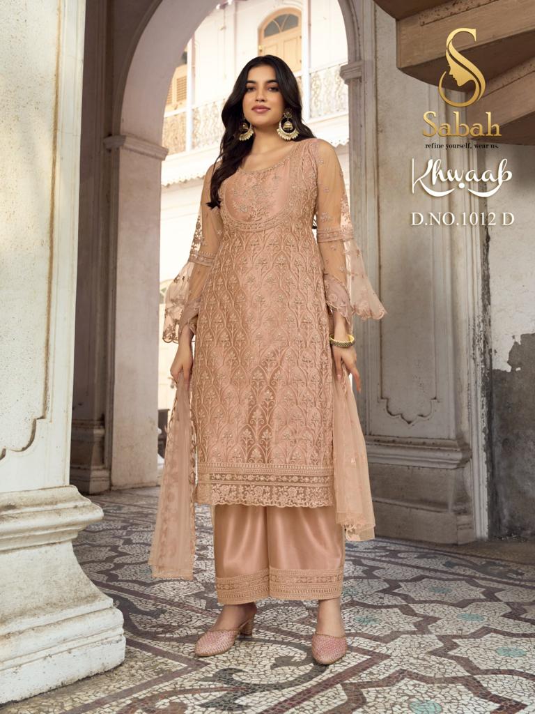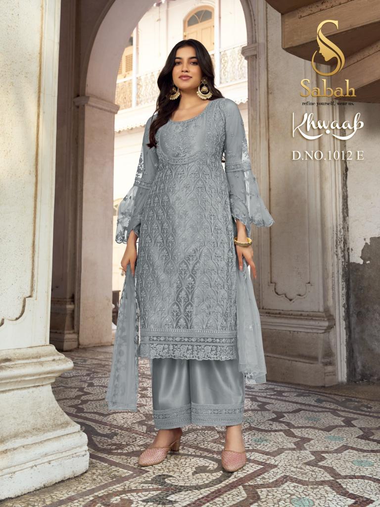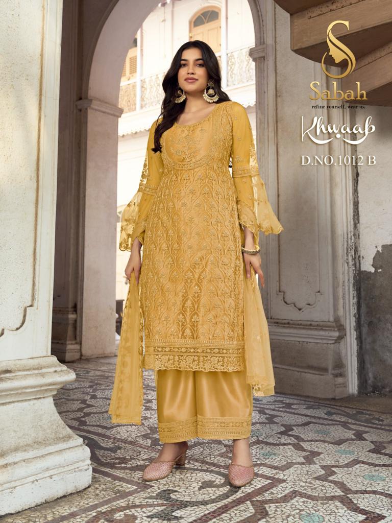 Buy Online Khwaab 1012 Color Plus By Sabah 8 Pcs of Full Catalogue at Wholesale Price. Looking for Khwaab 1012 Color Plus By Sabah Full Catalouge at Best Price? Buy Now Khwaab 1012 Color Plus By Sabah at Wholesale Rate of Rs 13000 with Total 8 Pcs from authroized dealer and supplier of Brand. Cost of Each piece is just only Rs 1625 which is very low and affordable price to resale the product in your retail store ,This is Surat based Wholesale Supplier & Dealer of Brand. Click on Brand name to Know more about Brand's products.Call or Whatsapp on 9898838984 for booking or enquiry