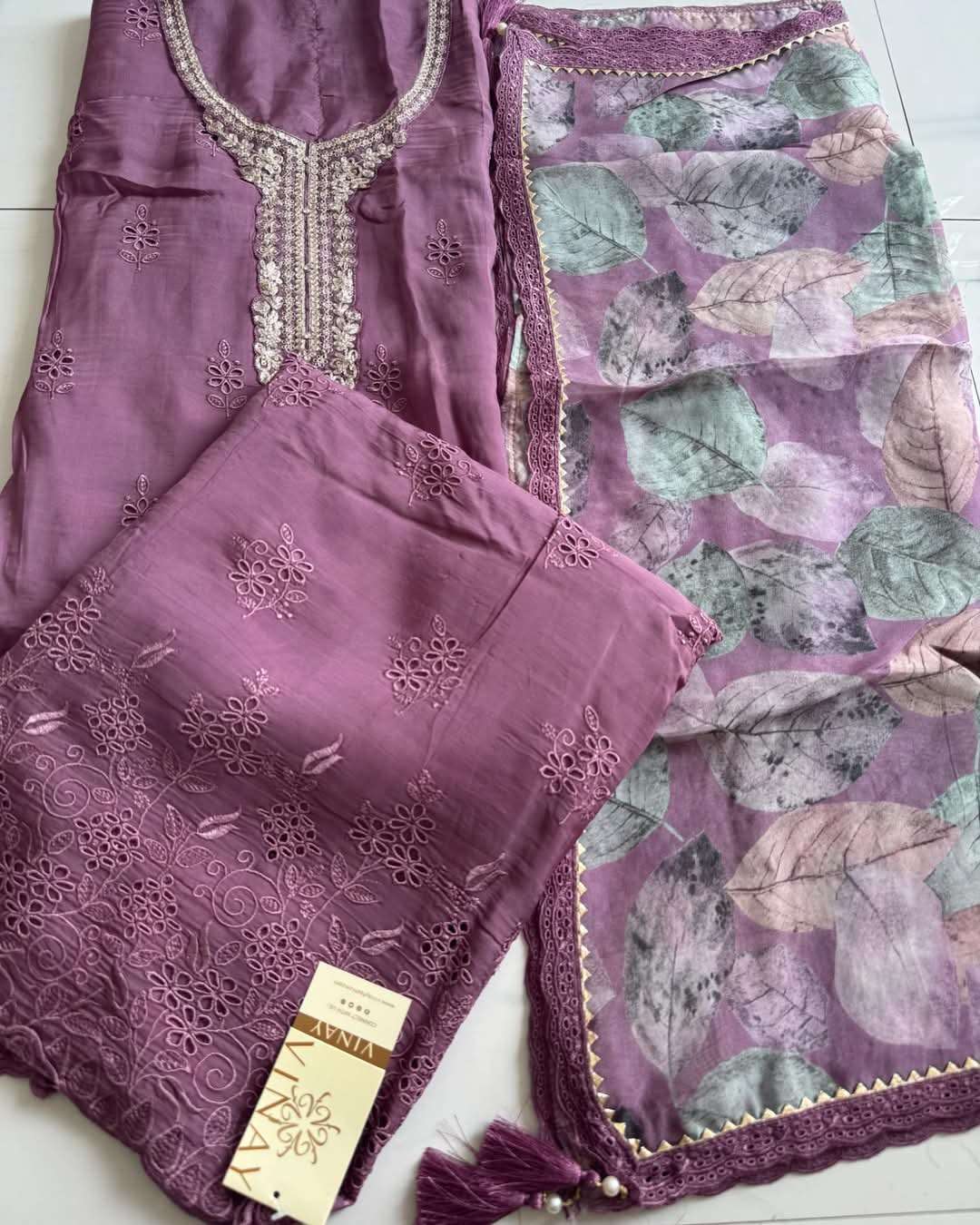 *DRESS MATARIALS* * *FABRIC DETAILS :-* * *TOP : SCHIFFLI EMBROIDERED ORGANZA* * *BOTTOM : SANTOON* * *DUPATTA : DIGITAL PRINTED VISCOSE ORGANZA DUPATTA*