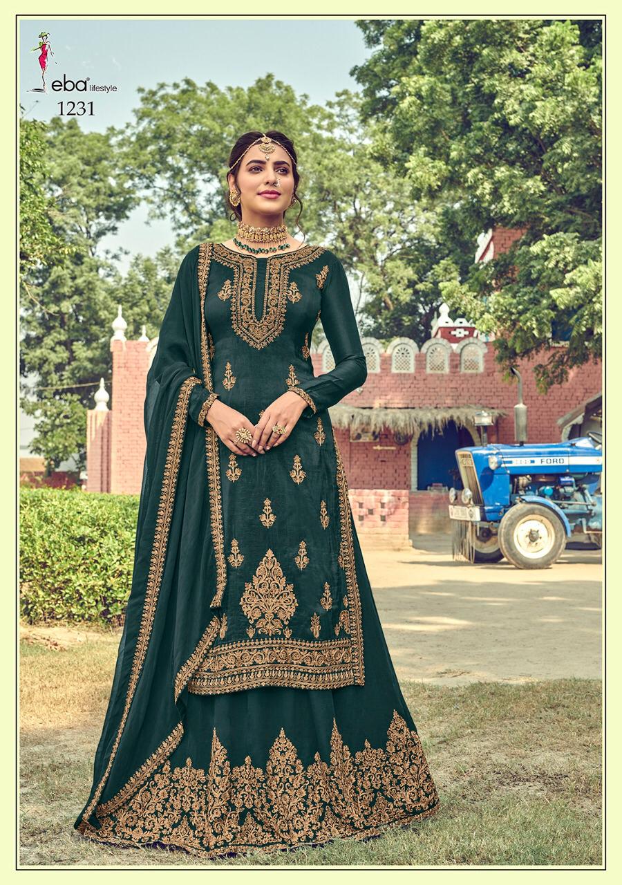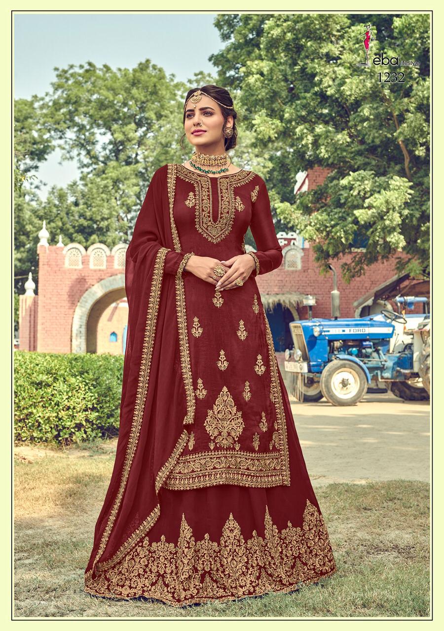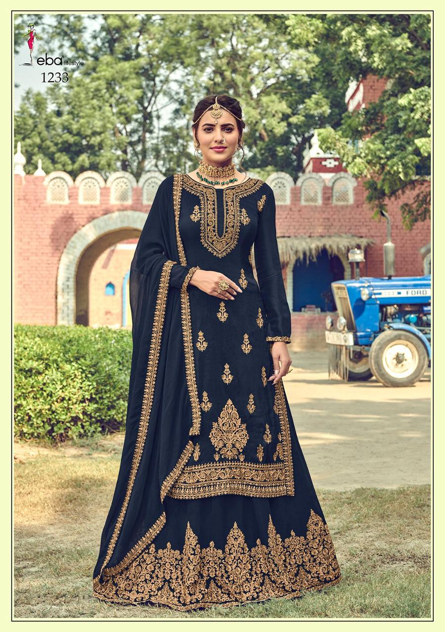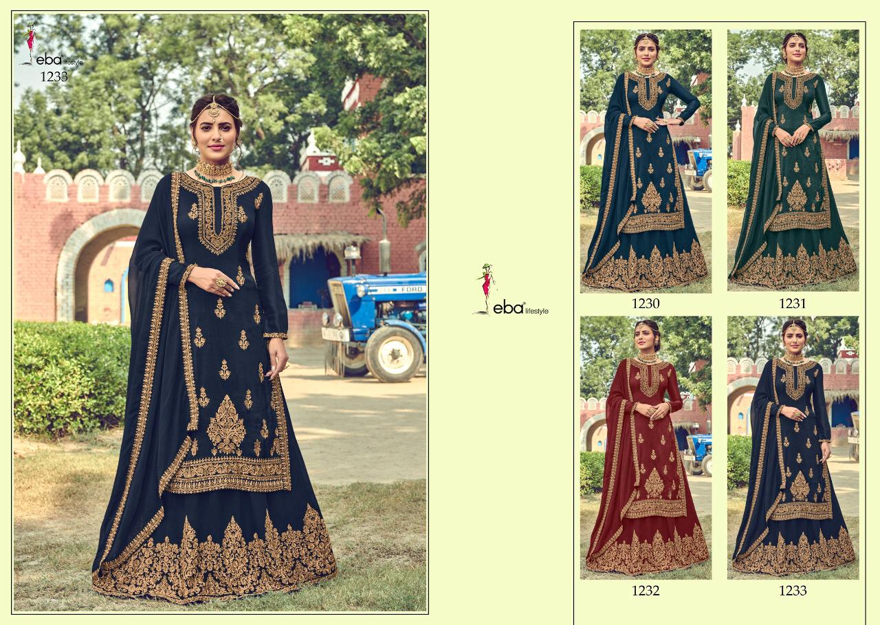 *Hello Dear customer* eba lifestyle presents New volume *khwaish* Febric - *Top - baluming gorget with hevey embroidery work* *Duppta- foux gourgette with four side work* *Lehanga =foux gourgette with Embroidery work* *Rate -1799/-* Set to set. Delivery 2-3 days Design - 4 Regards EBA lifestyle surat |