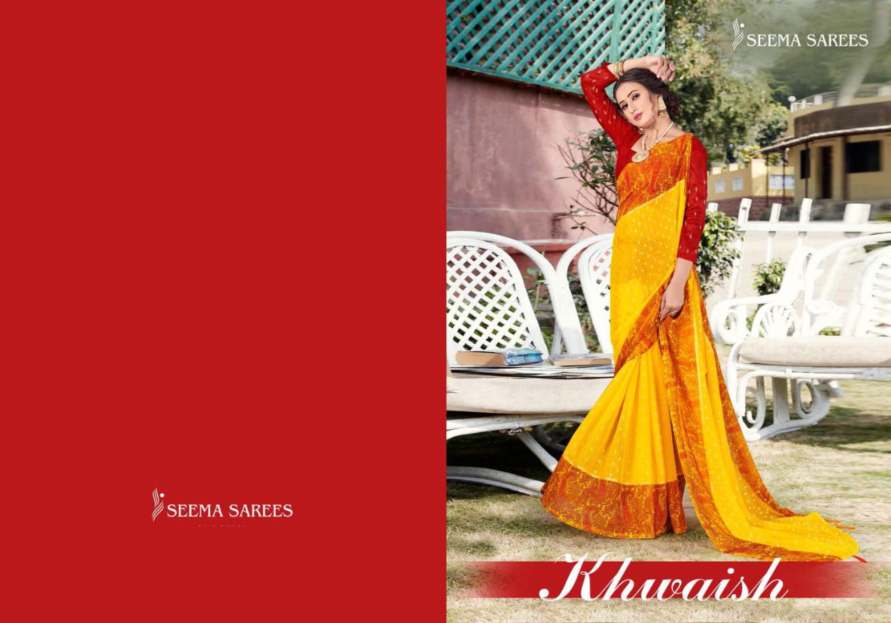 Buy Online Khwaish By Seema Saree Wholesale Supplier Traders In Surat 8 Pcs of Full Catalogue at Wholesale Price. Looking for Khwaish By Seema Saree Wholesale Supplier Traders In Surat Full Catalouge at Best Price? Buy Now Khwaish By Seema Saree Wholesale Supplier Traders In Surat at Wholesale Rate of Rs 4056 with Total 8 Pcs from authroized dealer and supplier of Brand. Cost of Each piece is just only Rs 507 which is very low and affordable price to resale the product in your retail store ,This is Surat based Wholesale Supplier & Dealer of Brand. Click on Brand name to Know more about Brand's products.Call or Whatsapp on 9898838984 for booking or enquiry