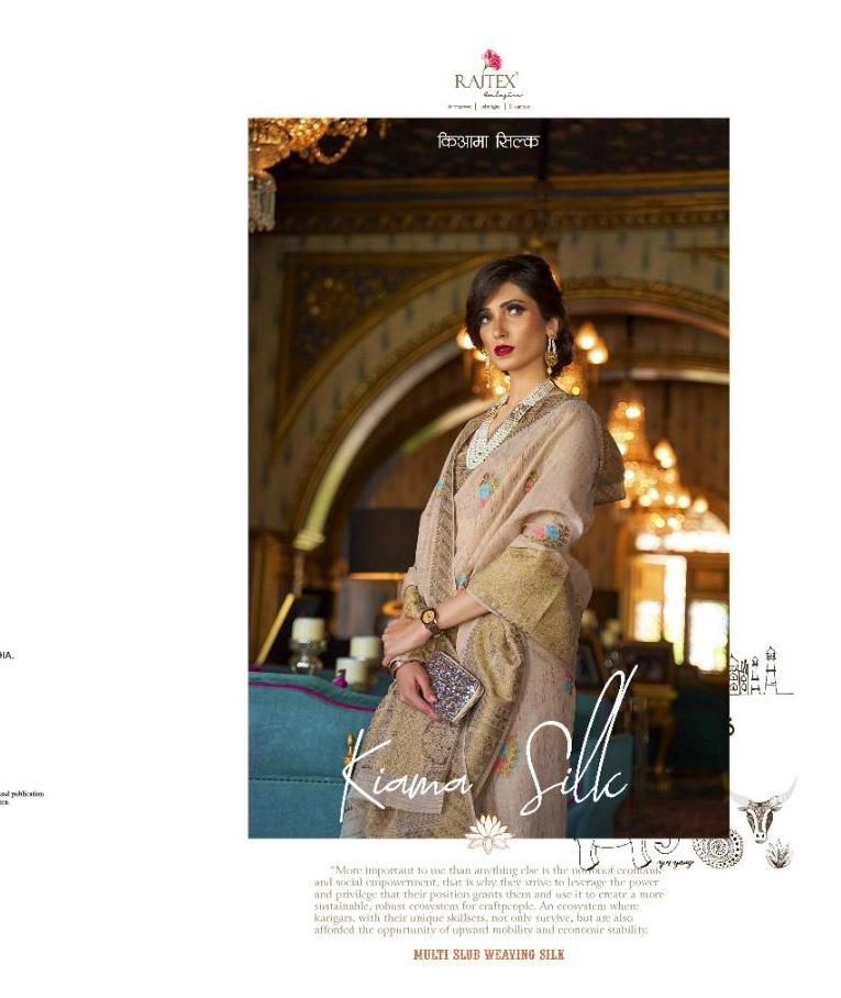 Brand - Raj Tex . Type - saree. Catlog series - 128001 to 128006. *KIAMA SILK* *Multi Slub Soft Silk* *Rate- 1360?* per Pcs . *set & loose & Singel * Single extra 100 GST 5 Percent Extra . Delivery from today |