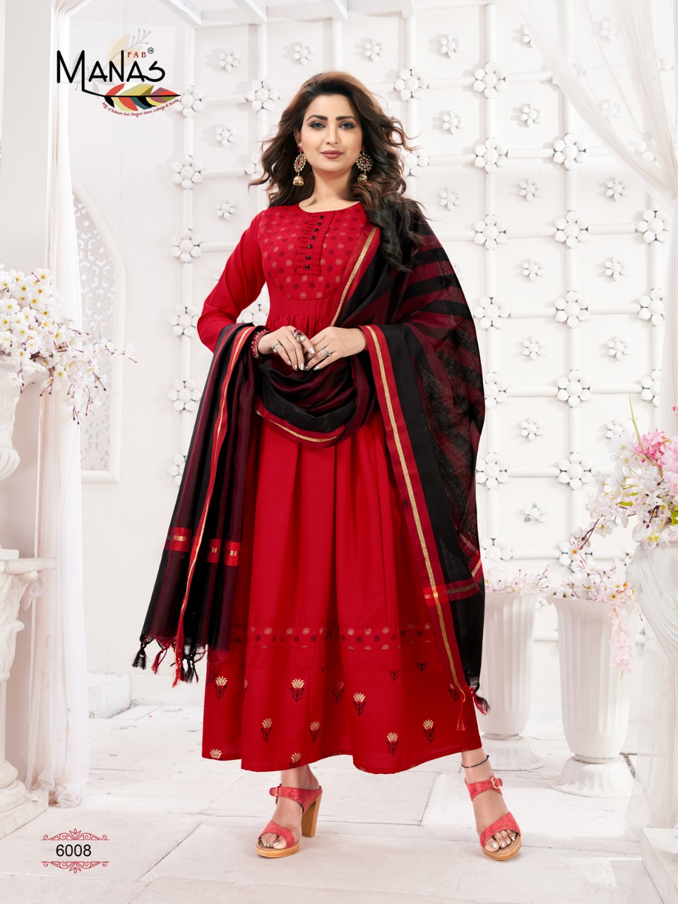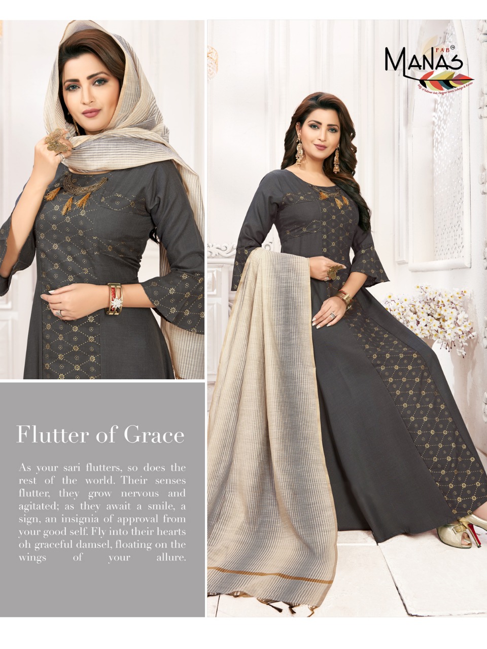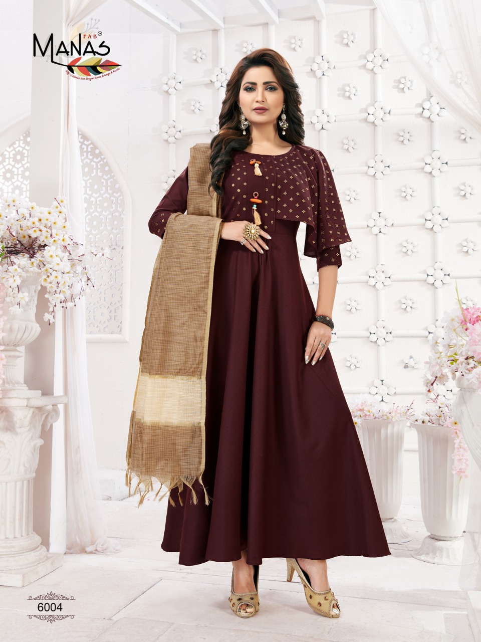 Kiara By Manas Slub Foil Print Gowns With Duppta Wholesale Supplier And Dealer Surat