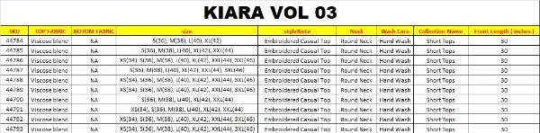 Buy Online Kiara Vol 3 By Party Wear Short Kurti 10 Pcs of Full Catalogue at Wholesale Price. Looking for Kiara Vol 3 By Party Wear Short Kurti Full Catalouge at Best Price? Buy Now Kiara Vol 3 By Party Wear Short Kurti at Wholesale Rate of Rs 3550 with Total 10 Pcs from authroized dealer and supplier of Brand. Cost of Each piece is just only Rs 355 which is very low and affordable price to resale the product in your retail store ,This is Surat based Wholesale Supplier & Dealer of Brand. Click on Brand name to Know more about Brand's products.Call or Whatsapp on 9898838984 for booking or enquiry