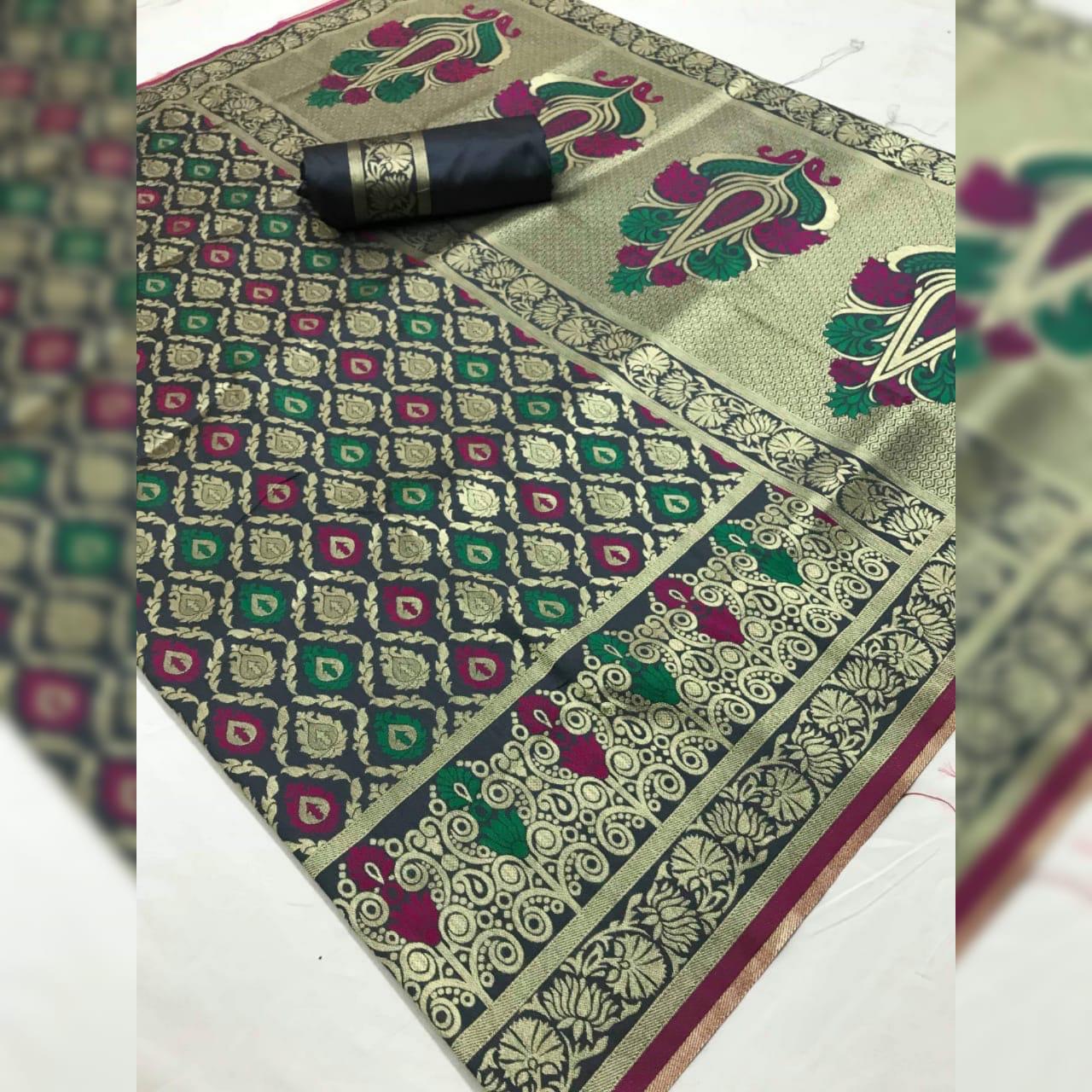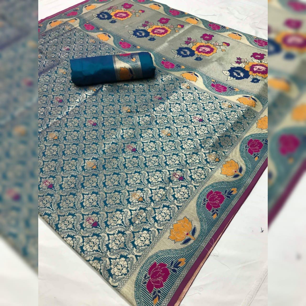 *KILFI SILK* by Raj Tex *Brocade Meenakari Silk* Seties -86001 to 86010 Rate- 1680? per Pcs *Singles* 1780/- GST 5 Percent Extra Ready to dispatch. |