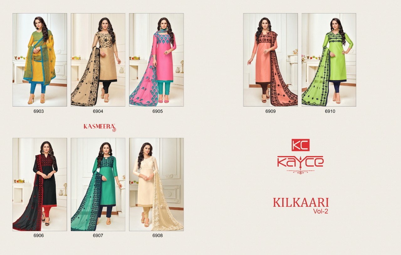 Buy Online Kilkaari Vol 2 By Kasmeera 6903 Series Model Silk Printed Salwar Kameez Catlog Wholesaler And Supplier Surat 8 Pcs of Full Catalogue at Wholesale Price. Looking for Kilkaari Vol 2 By Kasmeera 6903 Series Model Silk Printed Salwar Kameez Catlog Wholesaler And Supplier Surat Full Catalouge at Best Price? Buy Now Kilkaari Vol 2 By Kasmeera 6903 Series Model Silk Printed Salwar Kameez Catlog Wholesaler And Supplier Surat at Wholesale Rate of Rs 5592 with Total 8 Pcs from authroized dealer and supplier of Kasmeera Brand. Cost of Each piece is just only Rs 699 which is very low and affordable price to resale the product in your retail store ,This is Surat based Wholesale Supplier & Dealer of Kasmeera Brand. Click on Brand name to Know more about Kasmeera Brand's products.Call or Whatsapp on 9898838984 for booking or enquiry