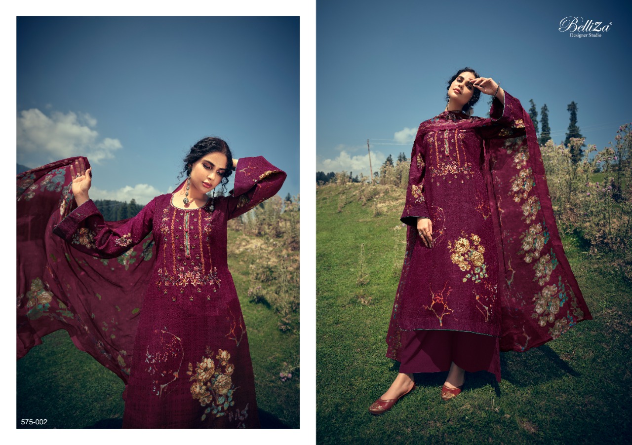 # PURE DUPATTA # EXOTIC DESIGNS # UNBEATABLE COLORS _*......BelliZa DesigNer StuDio......*_ _presents_ *"KIMAYA"* _...digital woollen collection..._ ?Top: 100% Pure Pashmina with Exclusive Heavy Embroidery. (2.50 mtrs) ?Dupatta: 100% Pure Bemberg 'Pure Dupatta'. (2.30 mtr) ?Bottom: Pure Pashmina Spun. (3 mtrs) ?Pcs: 10 ? Rate: 650/- # Book Now |