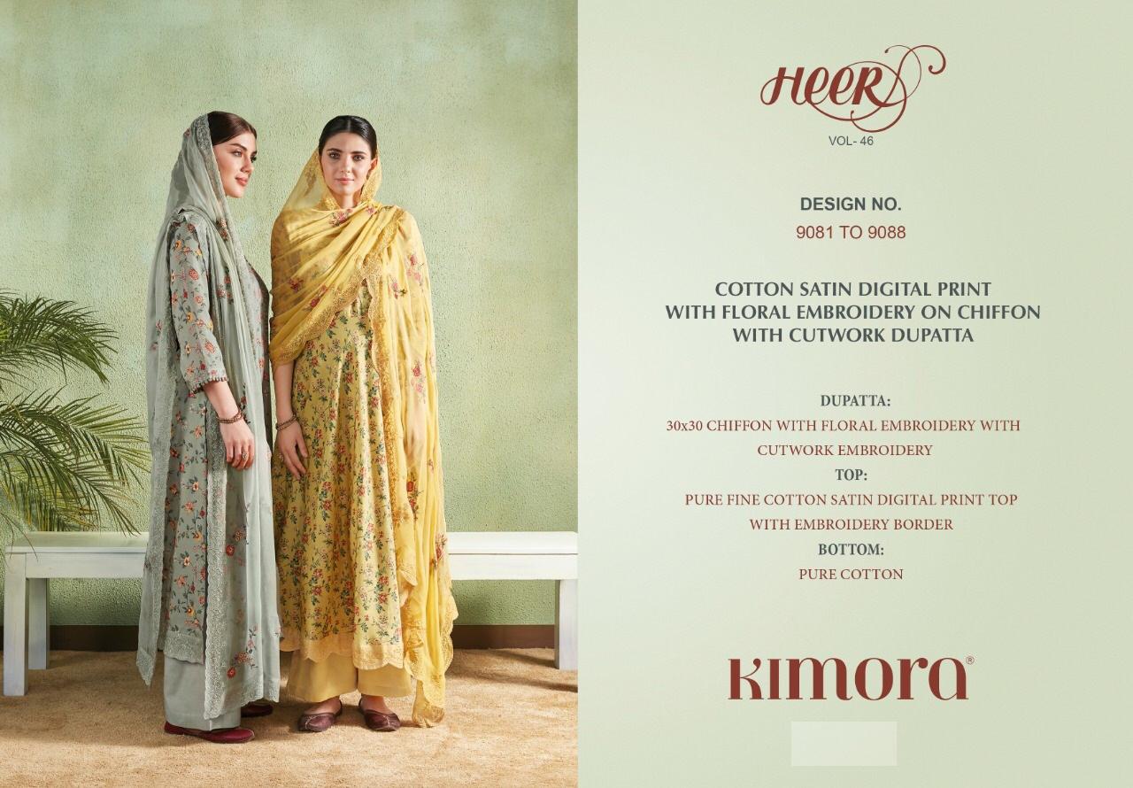 Buy Online Kimora Heer 46 Cotton Satin Digital Printed Suits Wholesale Supplier Gujarat 8 Pcs of Full Catalogue at Wholesale Price. Looking for Kimora Heer 46 Cotton Satin Digital Printed Suits Wholesale Supplier Gujarat Full Catalouge at Best Price? Buy Now Kimora Heer 46 Cotton Satin Digital Printed Suits Wholesale Supplier Gujarat at Wholesale Rate of Rs 12720 with Total 8 Pcs from authroized dealer and supplier of KIMORA Brand. Cost of Each piece is just only Rs 1590 which is very low and affordable price to resale the product in your retail store ,This is Surat based Wholesale Supplier & Dealer of KIMORA Brand. Click on Brand name to Know more about KIMORA Brand's products.Call or Whatsapp on 9898838984 for booking or enquiry