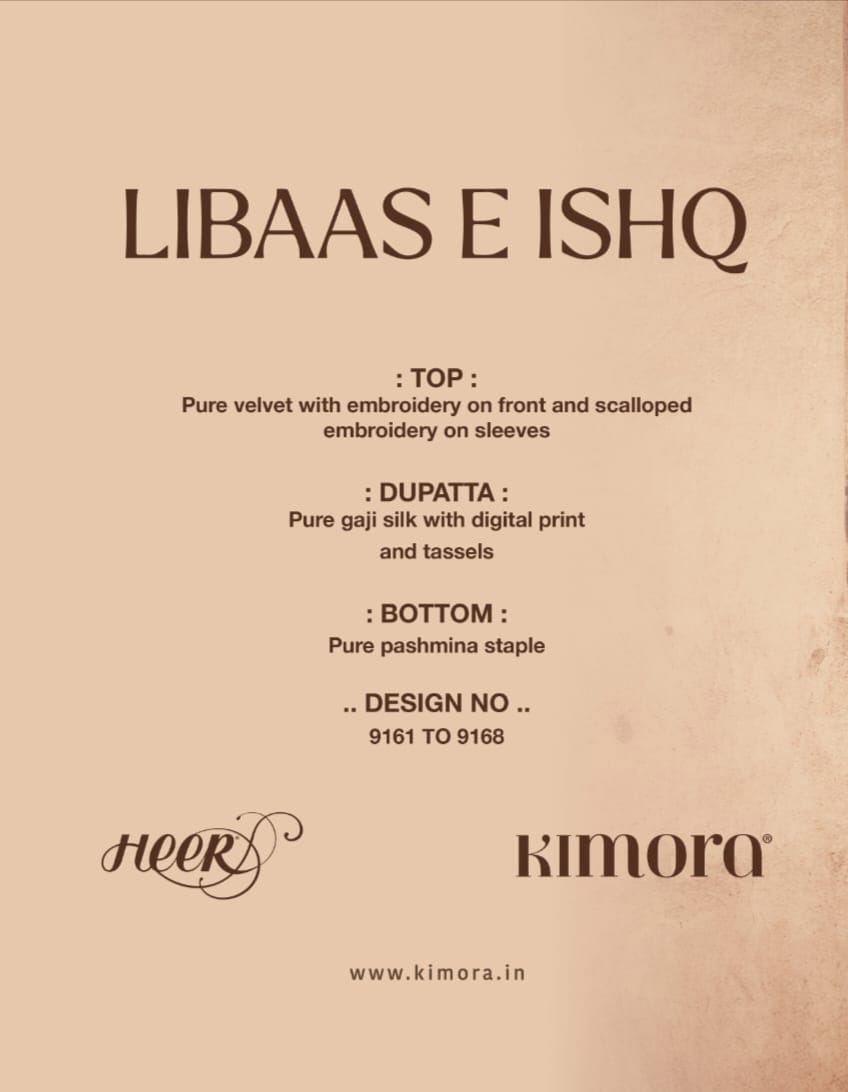 Buy Online Kimora Heer New Design Libaas E Ishq Heavy Embroidery Velvet Designer Suits 8 Pcs of Full Catalogue at Wholesale Price. Looking for Kimora Heer New Design Libaas E Ishq Heavy Embroidery Velvet Designer Suits Full Catalouge at Best Price? Buy Now Kimora Heer New Design Libaas E Ishq Heavy Embroidery Velvet Designer Suits at Wholesale Rate of Rs 21200 with Total 8 Pcs from authroized dealer and supplier of Brand. Cost of Each piece is just only Rs 2650 which is very low and affordable price to resale the product in your retail store ,This is Surat based Wholesale Supplier & Dealer of Brand. Click on Brand name to Know more about Brand's products.Call or Whatsapp on 9898838984 for booking or enquiry