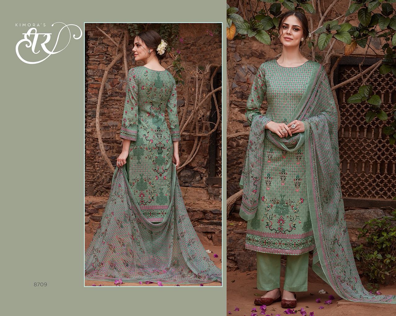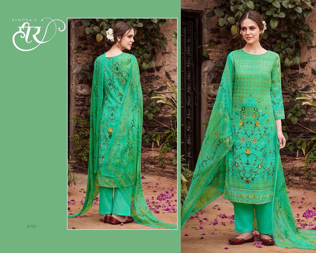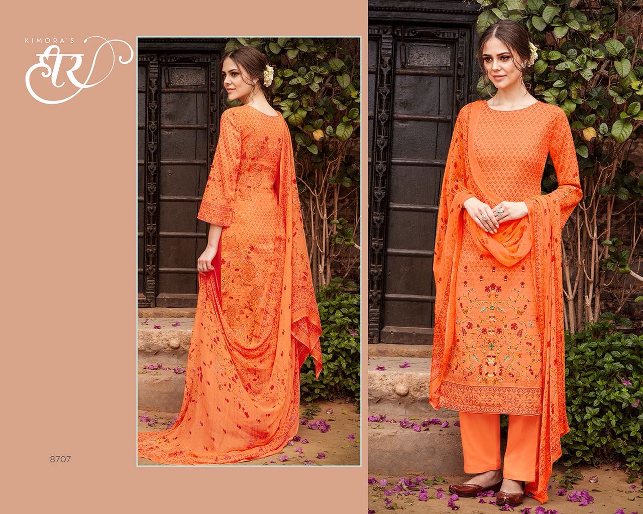 Buy Online Kimora Heer Vol 38 8701 Series Satin Print Suit Collection 11 Pcs of Full Catalogue at Wholesale Price. Looking for Kimora Heer Vol 38 8701 Series Satin Print Suit Collection Full Catalouge at Best Price? Buy Now Kimora Heer Vol 38 8701 Series Satin Print Suit Collection at Wholesale Rate of Rs 17545 with Total 11 Pcs from authroized dealer and supplier of KIMORA Brand. Cost of Each piece is just only Rs 1595 which is very low and affordable price to resale the product in your retail store ,This is Surat based Wholesale Supplier & Dealer of KIMORA Brand. Click on Brand name to Know more about KIMORA Brand's products.Call or Whatsapp on 9898838984 for booking or enquiry