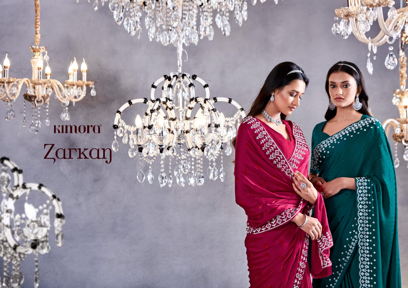 Buy Online Kimora New Catalog Zarkan Party Wear Sarees 9 Pcs of Full Catalogue at Wholesale Price. Looking for Kimora New Catalog Zarkan Party Wear Sarees Full Catalouge at Best Price? Buy Now Kimora New Catalog Zarkan Party Wear Sarees at Wholesale Rate of Rs 31050 with Total 9 Pcs from authroized dealer and supplier of KIMORA Brand. Cost of Each piece is just only Rs 3450 which is very low and affordable price to resale the product in your retail store ,This is Surat based Wholesale Supplier & Dealer of KIMORA Brand. Click on Brand name to Know more about KIMORA Brand's products.Call or Whatsapp on 9898838984 for booking or enquiry