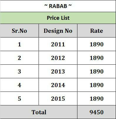 Buy Online Kimora New Catalogue Launch Rabab Designer Fancy Saree Wholesaler Supplier From Surat 5 Pcs of Full Catalogue at Wholesale Price. Looking for Kimora New Catalogue Launch Rabab Designer Fancy Saree Wholesaler Supplier From Surat Full Catalouge at Best Price? Buy Now Kimora New Catalogue Launch Rabab Designer Fancy Saree Wholesaler Supplier From Surat at Wholesale Rate of Rs 9450 with Total 5 Pcs from authroized dealer and supplier of KIMORA Brand. Cost of Each piece is just only Rs 1890 which is very low and affordable price to resale the product in your retail store ,This is Surat based Wholesale Supplier & Dealer of KIMORA Brand. Click on Brand name to Know more about KIMORA Brand's products.Call or Whatsapp on 9898838984 for booking or enquiry