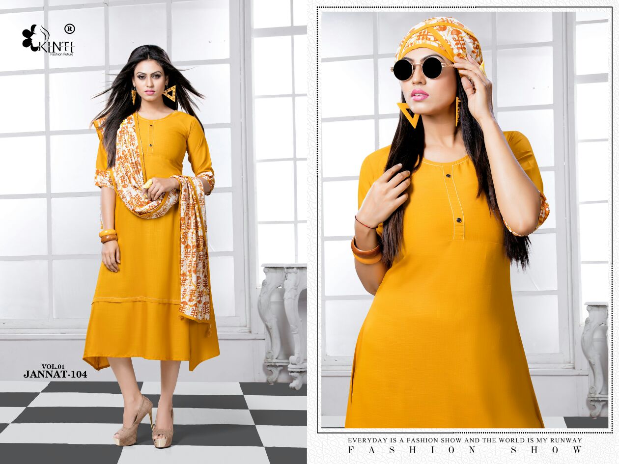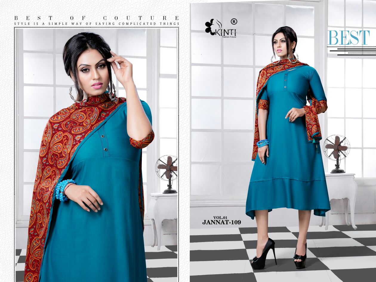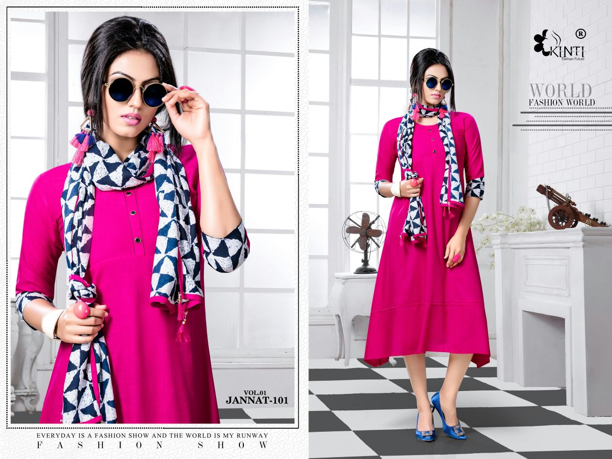Buy Online Kinti Jannat 101 Series Fancy Print Reyon Kurti Dealer Surat 12 Pcs of Full Catalogue at Wholesale Price. Looking for Kinti Jannat 101 Series Fancy Print Reyon Kurti Dealer Surat Full Catalouge at Best Price? Buy Now Kinti Jannat 101 Series Fancy Print Reyon Kurti Dealer Surat at Wholesale Rate of Rs 6900 with Total 12 Pcs from authroized dealer and supplier of Kinti fashion future Brand. Cost of Each piece is just only Rs 575 which is very low and affordable price to resale the product in your retail store ,This is Surat based Wholesale Supplier & Dealer of Kinti fashion future Brand. Click on Brand name to Know more about Kinti fashion future Brand's products.Call or Whatsapp on 9898838984 for booking or enquiry