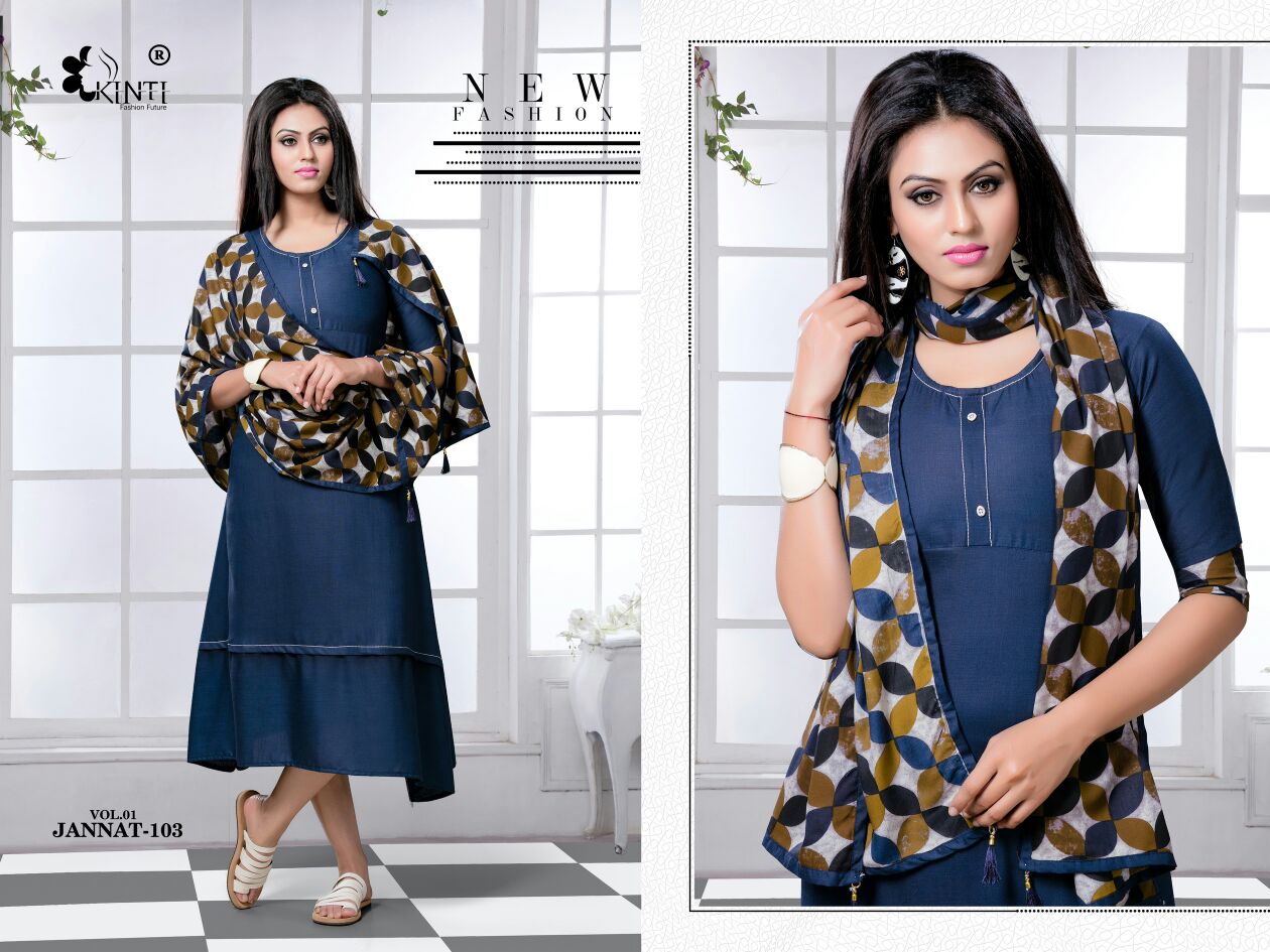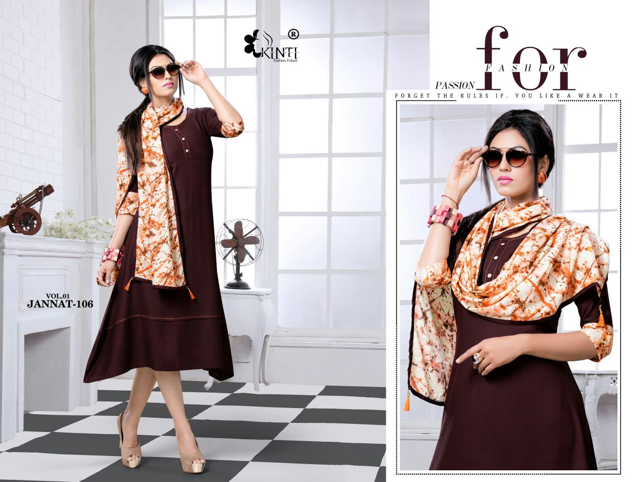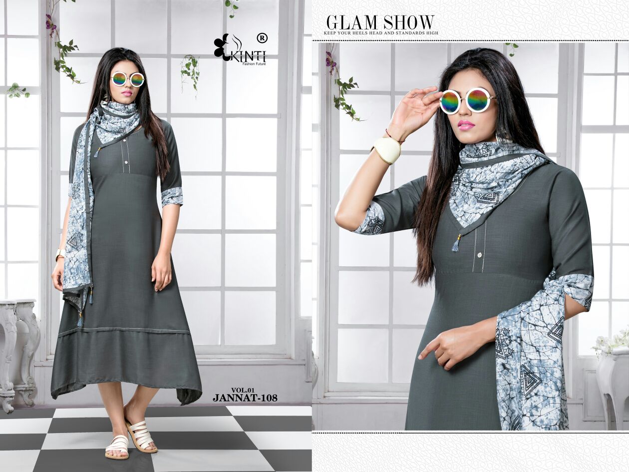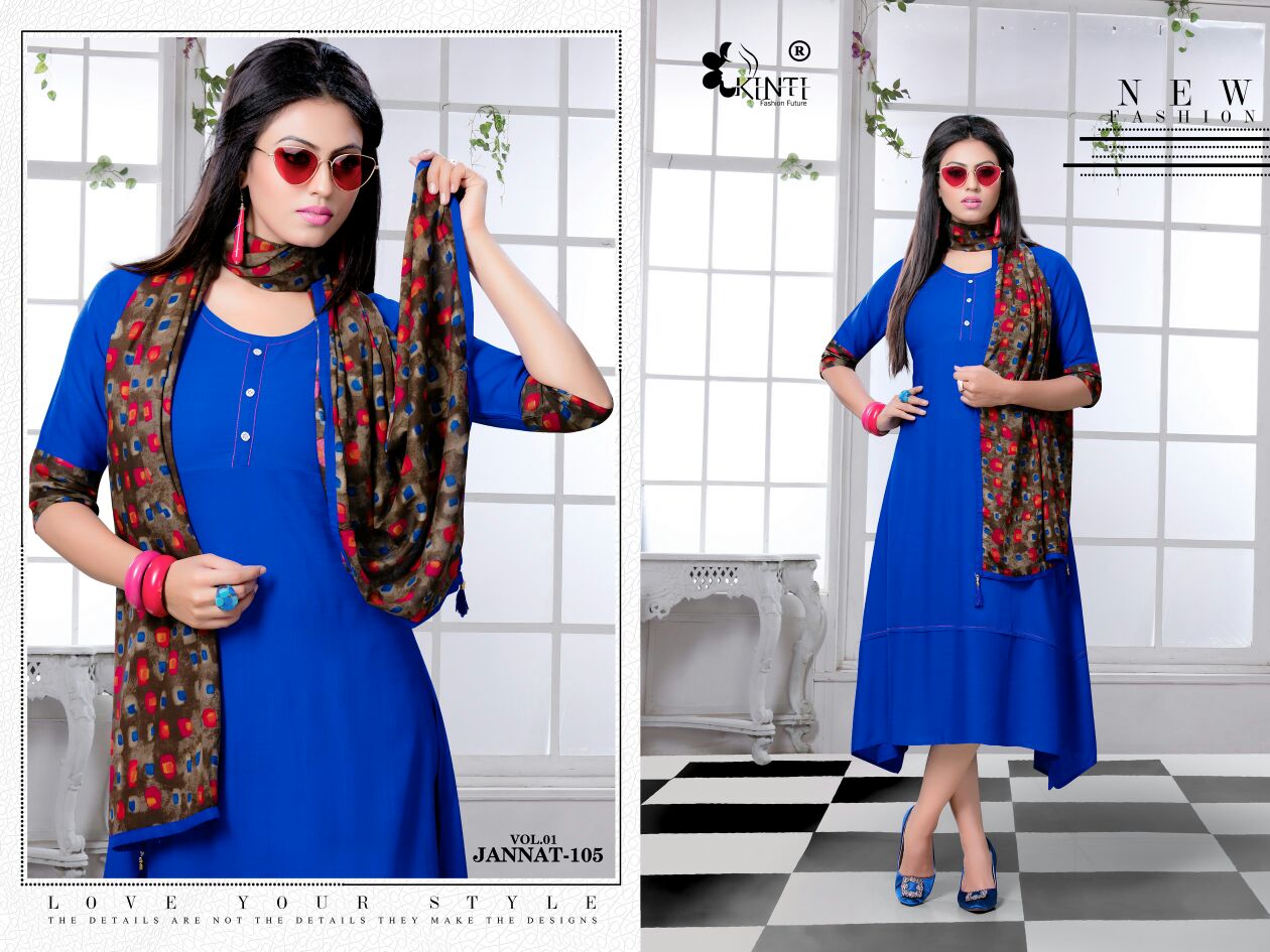 Buy Online Kinti Jannat 101 Series Fancy Print Reyon Kurti Dealer Surat 12 Pcs of Full Catalogue at Wholesale Price. Looking for Kinti Jannat 101 Series Fancy Print Reyon Kurti Dealer Surat Full Catalouge at Best Price? Buy Now Kinti Jannat 101 Series Fancy Print Reyon Kurti Dealer Surat at Wholesale Rate of Rs 6900 with Total 12 Pcs from authroized dealer and supplier of Kinti fashion future Brand. Cost of Each piece is just only Rs 575 which is very low and affordable price to resale the product in your retail store ,This is Surat based Wholesale Supplier & Dealer of Kinti fashion future Brand. Click on Brand name to Know more about Kinti fashion future Brand's products.Call or Whatsapp on 9898838984 for booking or enquiry