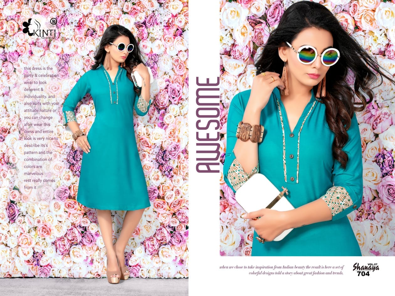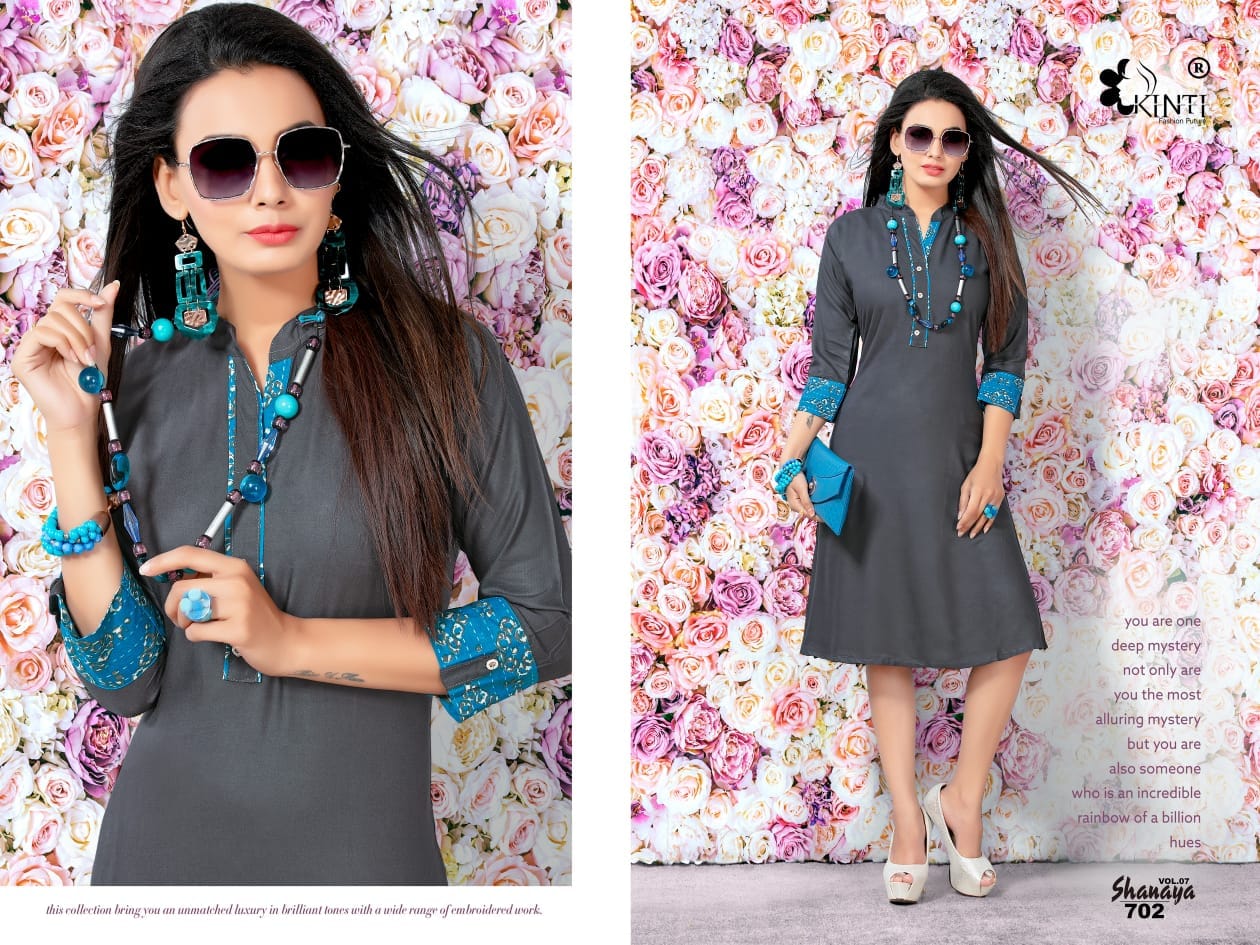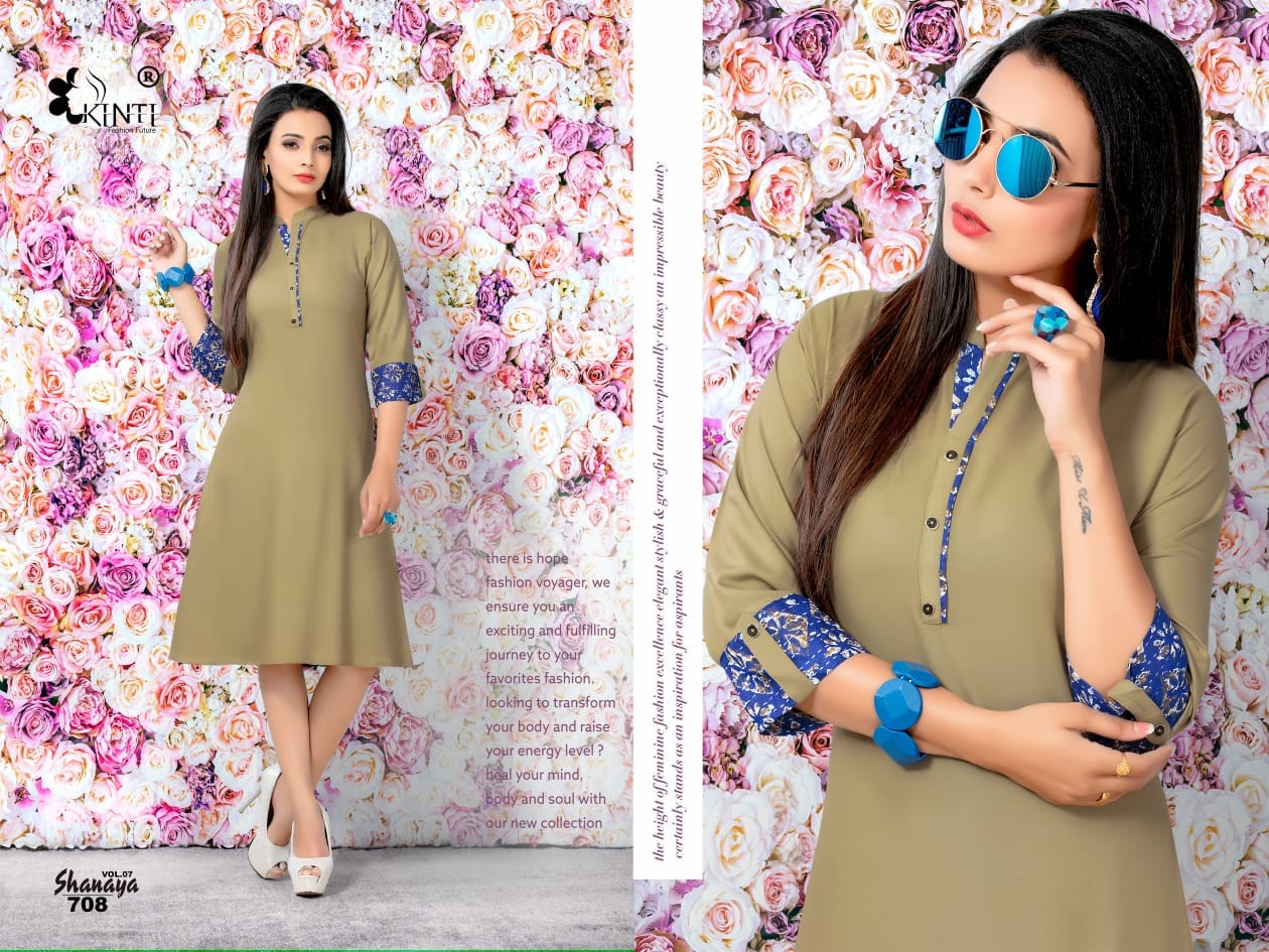Kinti Shanaya Vol 7 701 Series Reyon Cotton Kurti Catlog Wholesale Dealer Surat