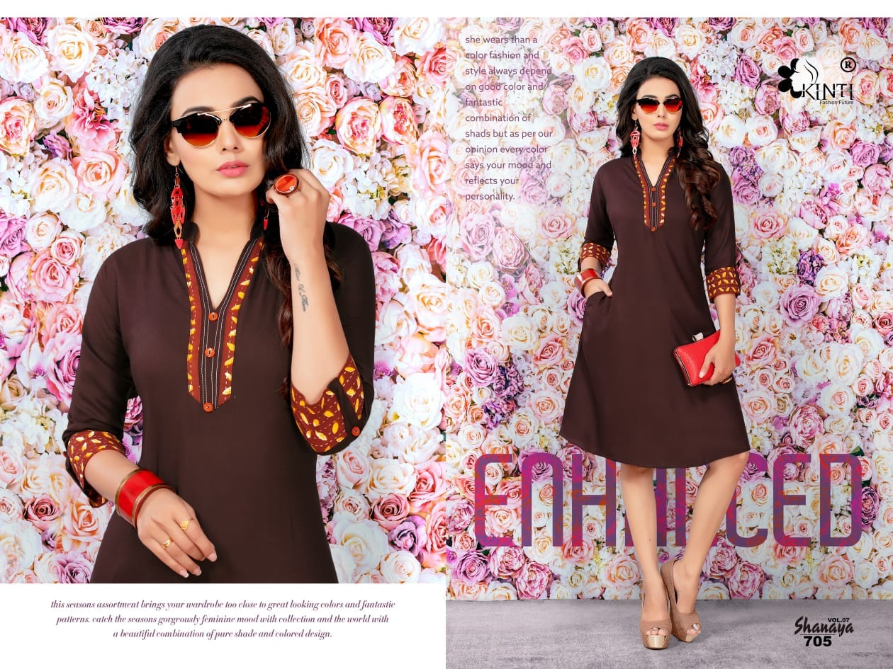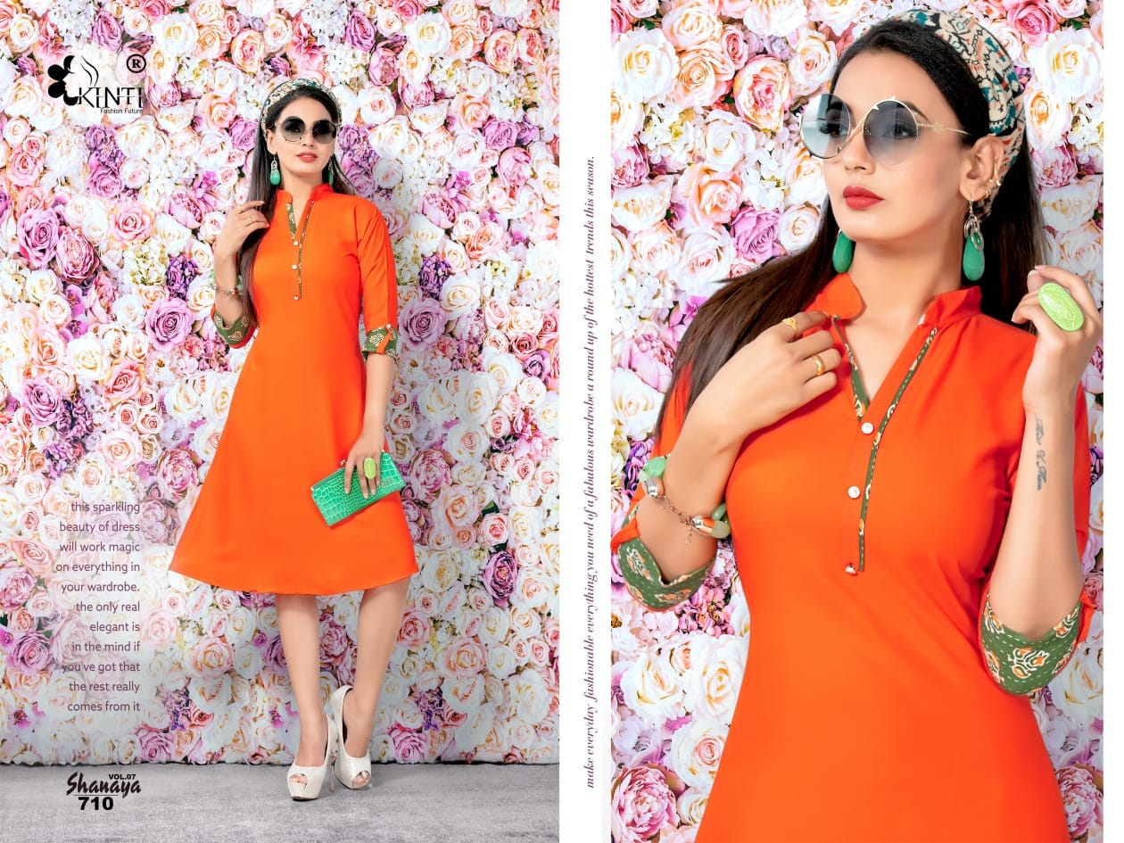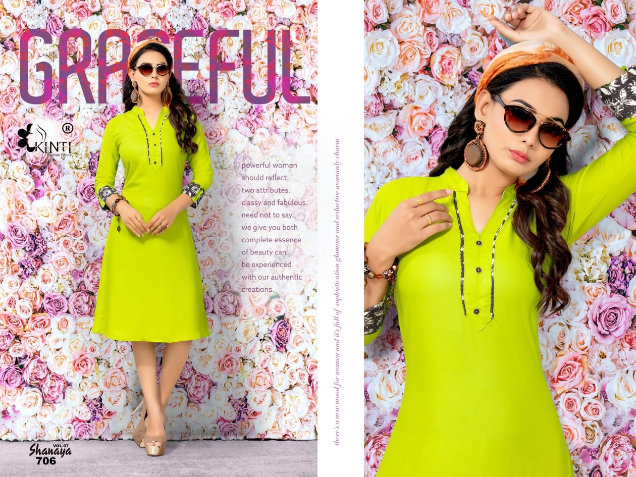 Kinti Shanaya Vol 7 701 Series Reyon Cotton Kurti Catlog Wholesale Dealer Surat