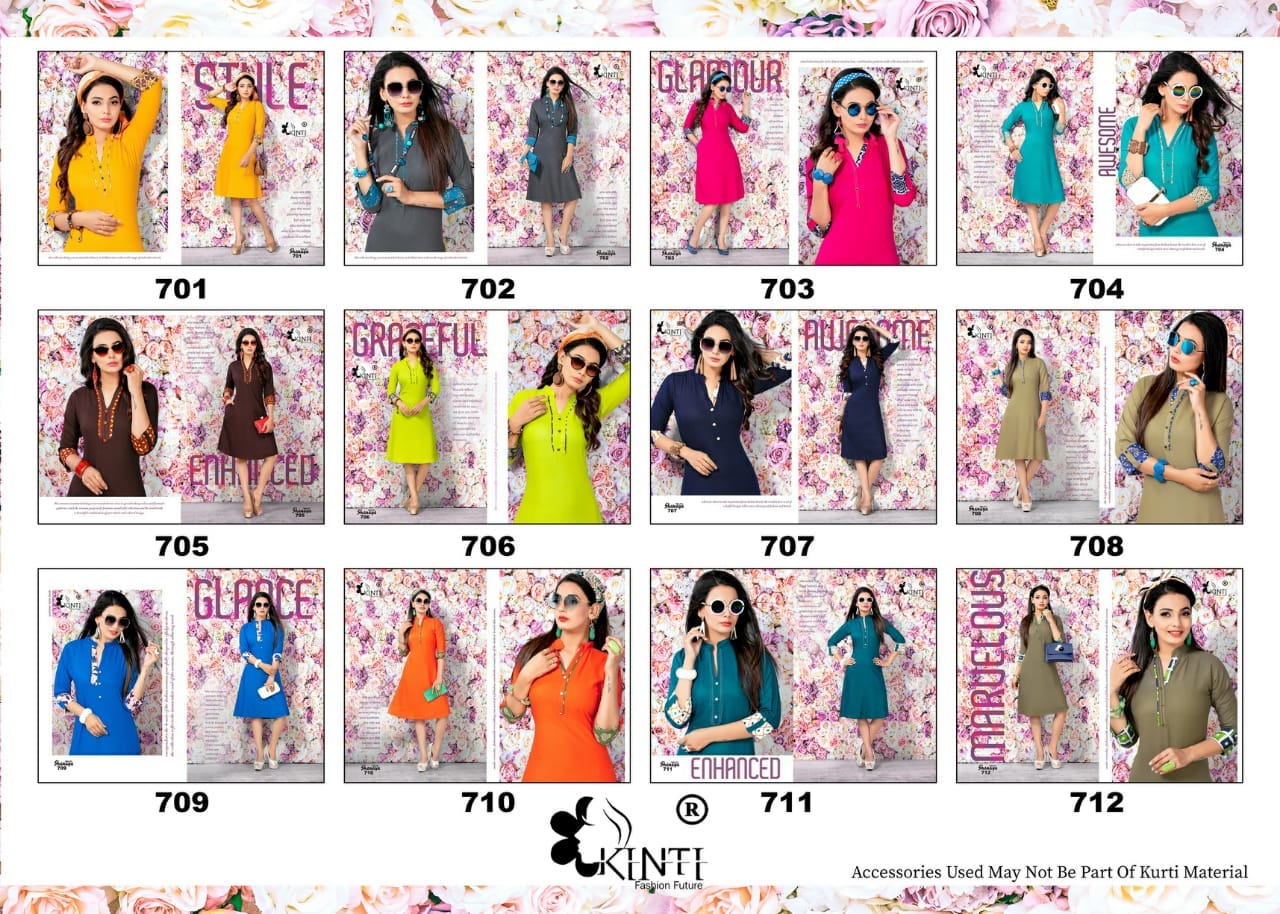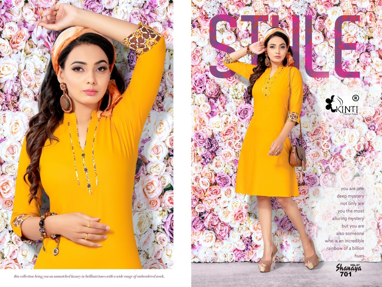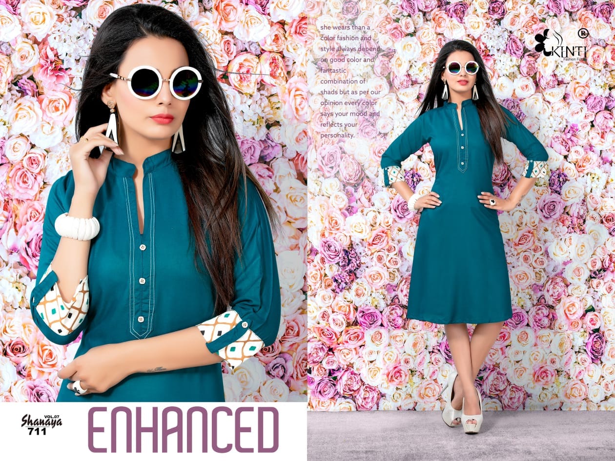 Buy Online Kinti Shanaya Vol 7 701 Series Reyon Cotton Kurti Catlog Wholesale Dealer Surat 12 Pcs of Full Catalogue at Wholesale Price. Looking for Kinti Shanaya Vol 7 701 Series Reyon Cotton Kurti Catlog Wholesale Dealer Surat Full Catalouge at Best Price? Buy Now Kinti Shanaya Vol 7 701 Series Reyon Cotton Kurti Catlog Wholesale Dealer Surat at Wholesale Rate of Rs 0 with Total 12 Pcs from authroized dealer and supplier of Kinti fashion future Brand. Cost of Each piece is just only Rs 0 which is very low and affordable price to resale the product in your retail store ,This is Surat based Wholesale Supplier & Dealer of Kinti fashion future Brand. Click on Brand name to Know more about Kinti fashion future Brand's products.Call or Whatsapp on 9898838984 for booking or enquiry