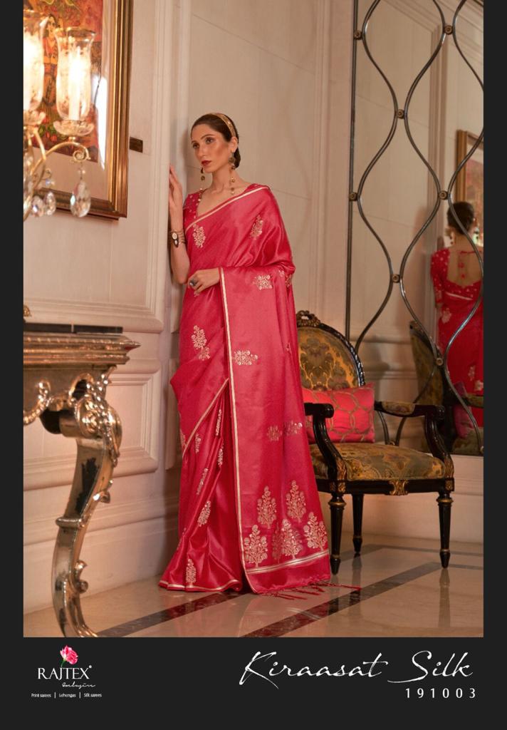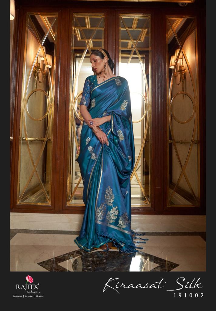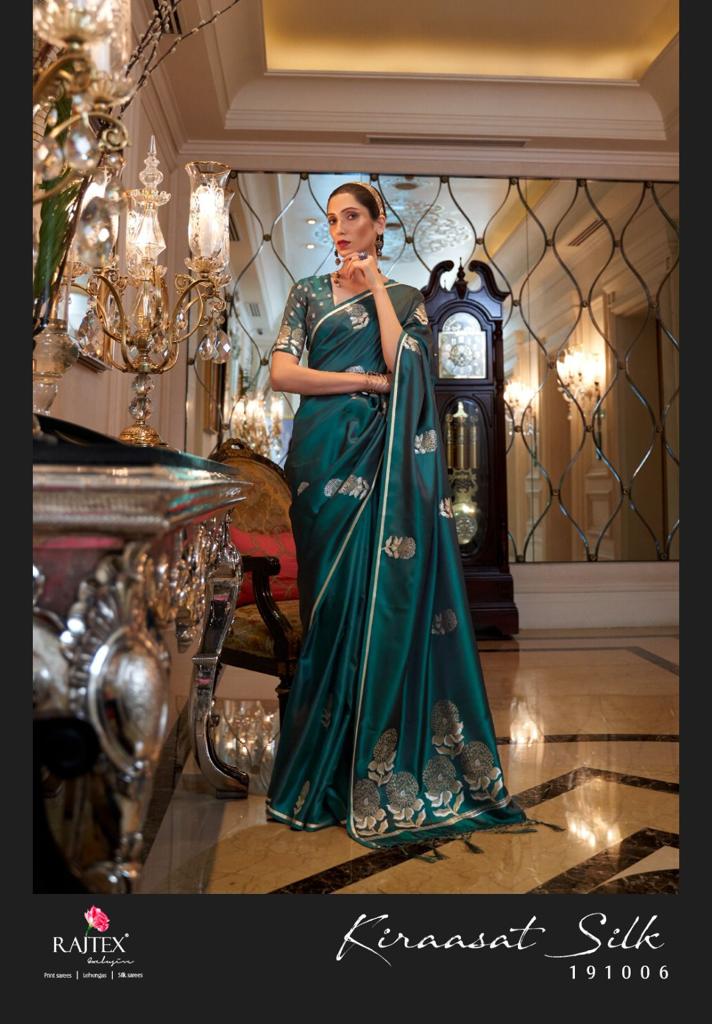*BRAND:- RAJTEX* ? *CATLOGUE* - *KIRAASAT SILK? ?* ? *Fabric* - PURE SATIN WEAVING SILK ?PRICE:- 1525 /- INR GST EXTRA ? Book Fast (Singles / Set) ? Ready Stock *?We always trust in Quality* *?Plz Stay Away From Duplicate Products* 100+Singles |