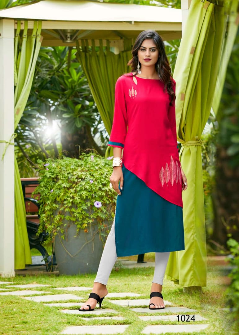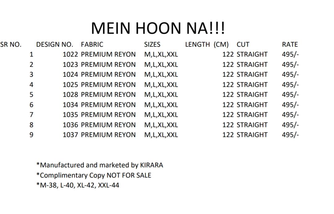 Buy Online Kirara Main Hoon Na 1022 Series Reyon Kurti Catlog Wholesale Dealer And Supplier Surat 9 Pcs of Full Catalogue at Wholesale Price. Looking for Kirara Main Hoon Na 1022 Series Reyon Kurti Catlog Wholesale Dealer And Supplier Surat Full Catalouge at Best Price? Buy Now Kirara Main Hoon Na 1022 Series Reyon Kurti Catlog Wholesale Dealer And Supplier Surat at Wholesale Rate of Rs 4455 with Total 9 Pcs from authroized dealer and supplier of Kirara Brand. Cost of Each piece is just only Rs 495 which is very low and affordable price to resale the product in your retail store ,This is Surat based Wholesale Supplier & Dealer of Kirara Brand. Click on Brand name to Know more about Kirara Brand's products.Call or Whatsapp on 9898838984 for booking or enquiry